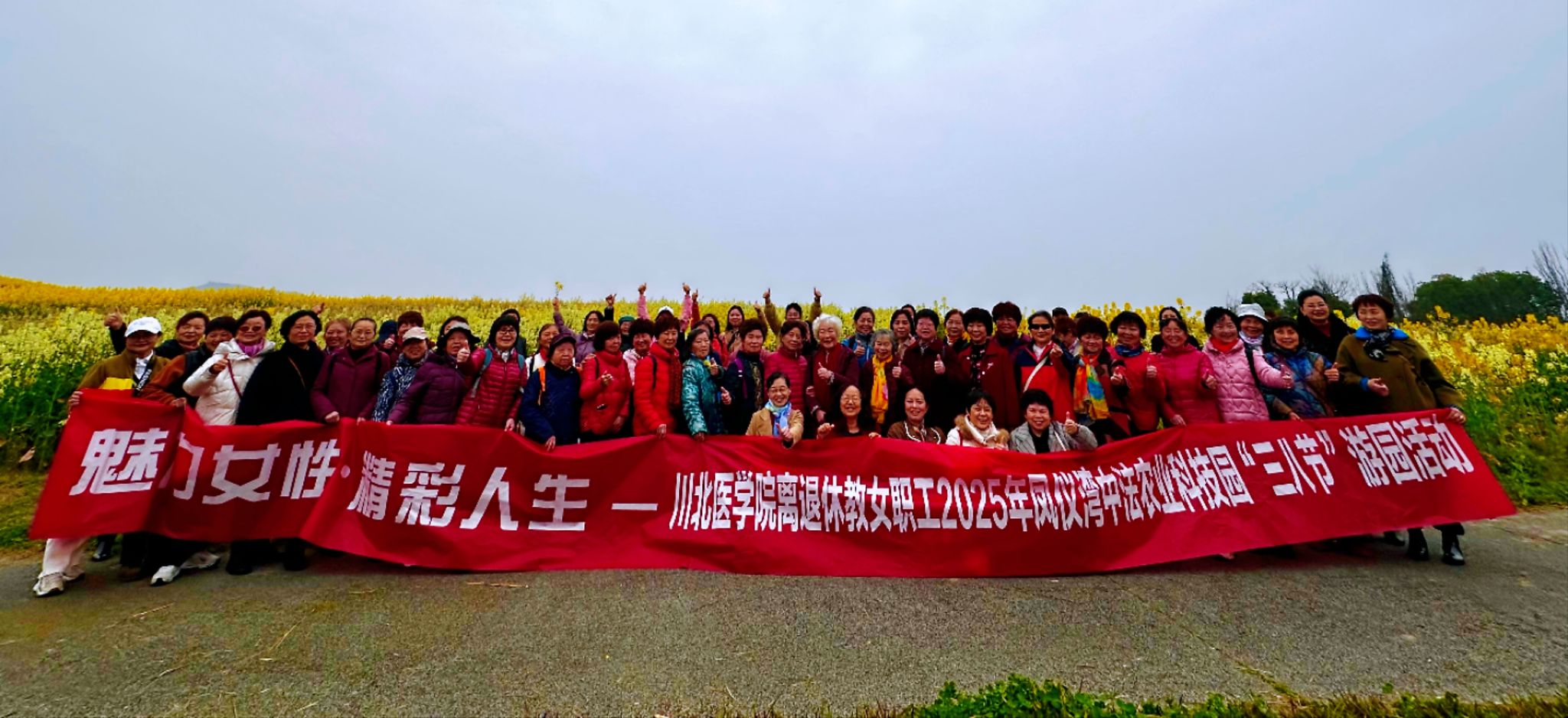 在南充凤仪湾中法农业科技园,老同志们在大自然的怀抱中度过了一个温馨、愉快的游园踏春节日。活动当天,天气晴朗,阳光明媚,微风轻拂,在浓郁的春天气息中离退休女职工们一早便满怀期待地集合出发,一路上欢声笑语,兴致盎然。在满园鲜花的凤仪湾中法农业科技园,黄灿灿的油菜花田宛如一片金色的海洋。老同志们漫步在园区的小道上,一边欣赏着如诗如画的春日美景,一边畅叙着往日情谊,分享着退休后的生活点滴。她们的脸上洋溢着幸福的笑容,尽情享受着悠闲惬意的时光。大家纷纷拿出手机拍照留念,记录下这美好的瞬间,定格住属于她们的“芳华”。