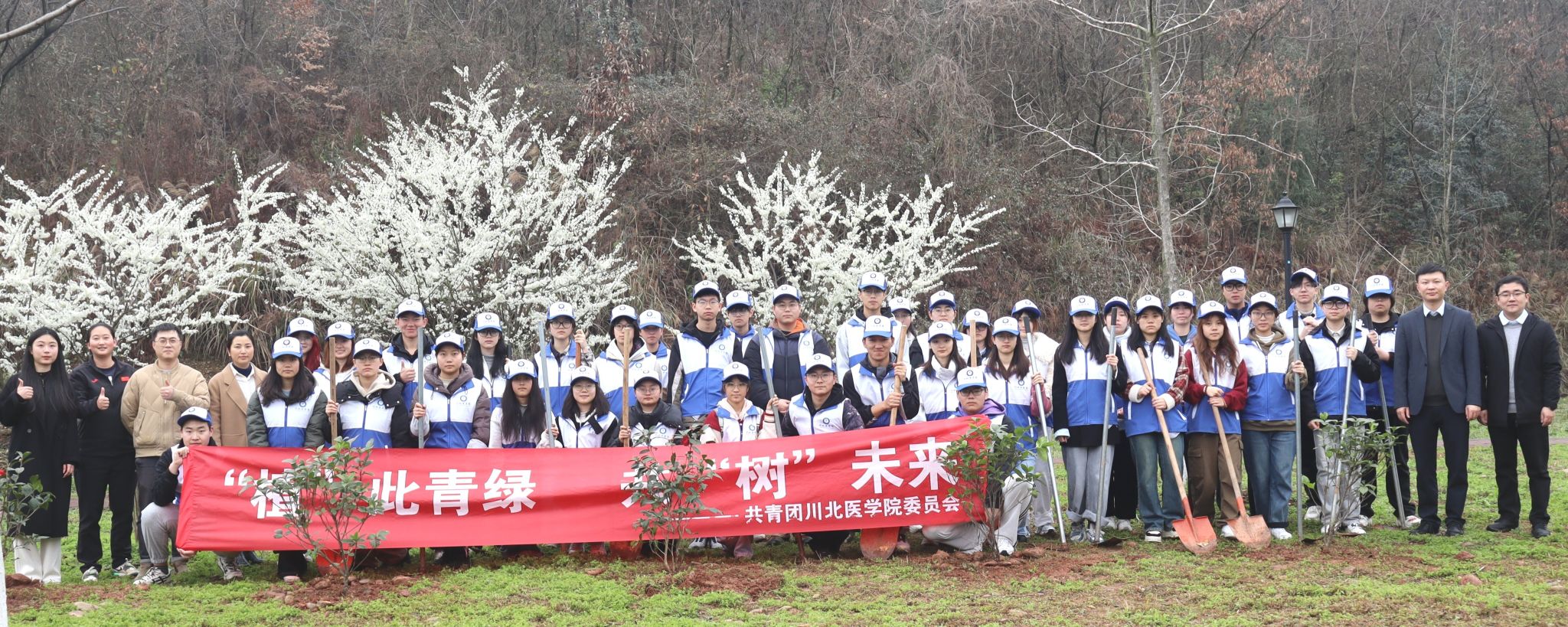 每年的3月12日,是我国法定的植树节。这个节日不仅承载着人们对绿色家园的向往,更蕴含着对历史的铭记与对未来的期许。2025年是开展全民义务植树运动44周年,3月12日是第47个中国植树节,校团委于高坪校区西湖畔组织植树活动,以实际行动诠释绿色发展理念,推动生态文明建设。校团委副书记弋鹏圣,中西医结合临床医学院、公共卫生学院、药学院、管理学院团总支负责教师和各学院学生代表参加活动。