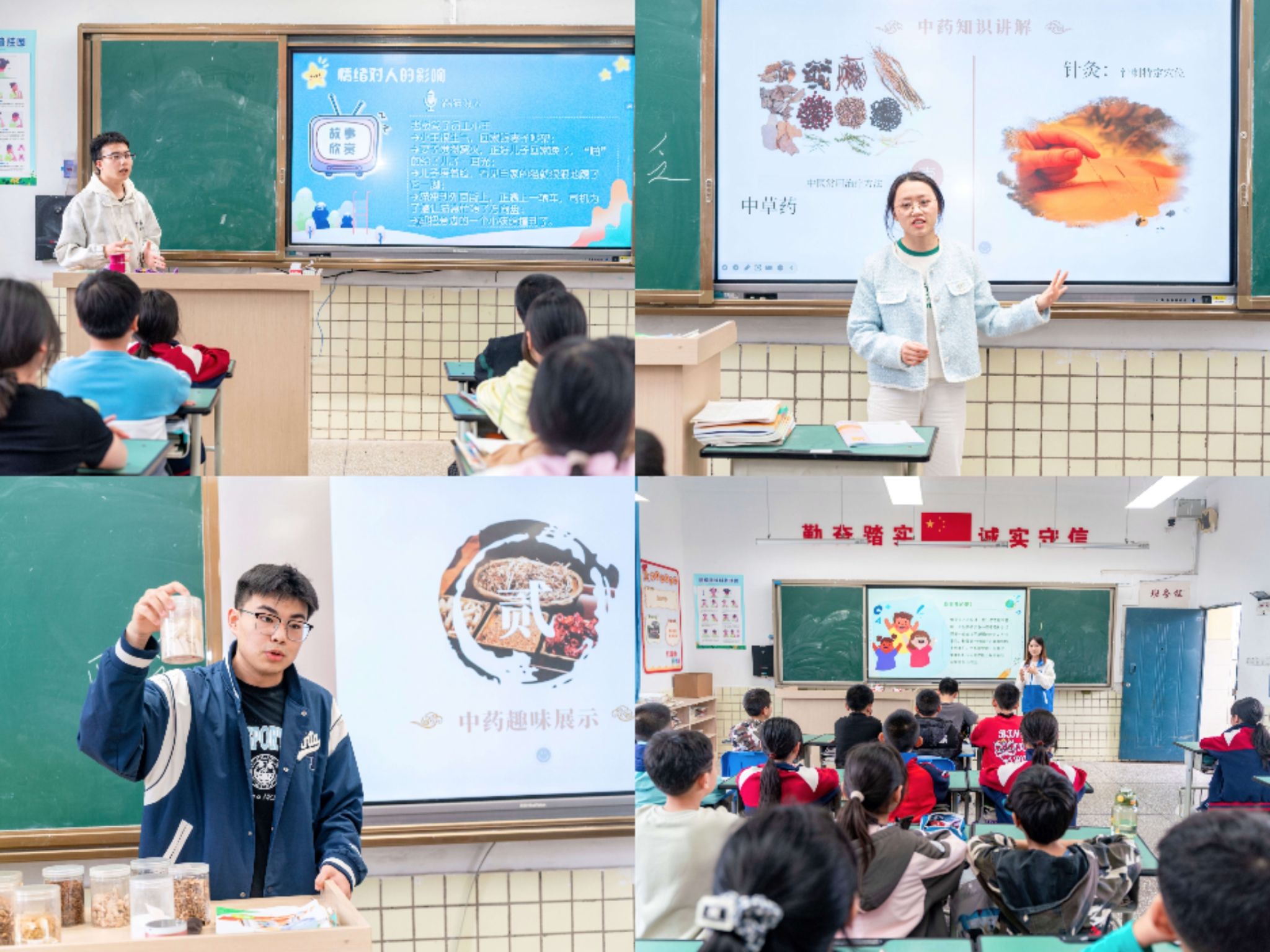 习近平总书记回信勉励四川省南充市嘉陵区之江小学学生一周年即将到来之际,川北医学院与之江小学签约共建,传承中医药文化,播撒中华优秀传统文化种子,架起杏林启蒙的桥梁。在中医药课堂,志愿者引导孩子们通过“望、闻、触”的方式在观察药材纹理、对比新旧陈皮、闭眼触辨等互动中,切身感受中医药“四气五味”的深邃智慧。此外,志愿者们还为孩子们带来健康科普教育与心理健康教育课堂,帮助他们建立正确的自我认知,培养积极健康的心态,为青少年成长保驾护航。