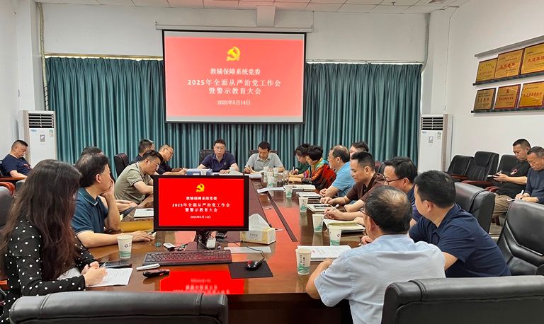 5月14日下午,教辅保障系统党委召开2025年全面从严治党工作会暨警示教育大会,学校党委常委、组织部部长罗家明,学校纪委副书记、纪委办公室主任雷庆明,教辅党委委员、组织员,所辖部门副科以上干部、党支部书记、纪检委员参加会议。会议由教辅党委书记陈守云主持。