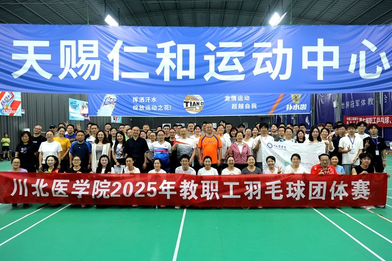 为进一步丰富我校教职工文体生活、增强团队凝聚力,展现教职工积极向上的精神风貌,推动学校高质量发展,由学校工会、学校体育运动委员会主办,教职工羽毛球协会承办的川北医学院2025年教职工羽毛球团体赛于5月17日成功举行。