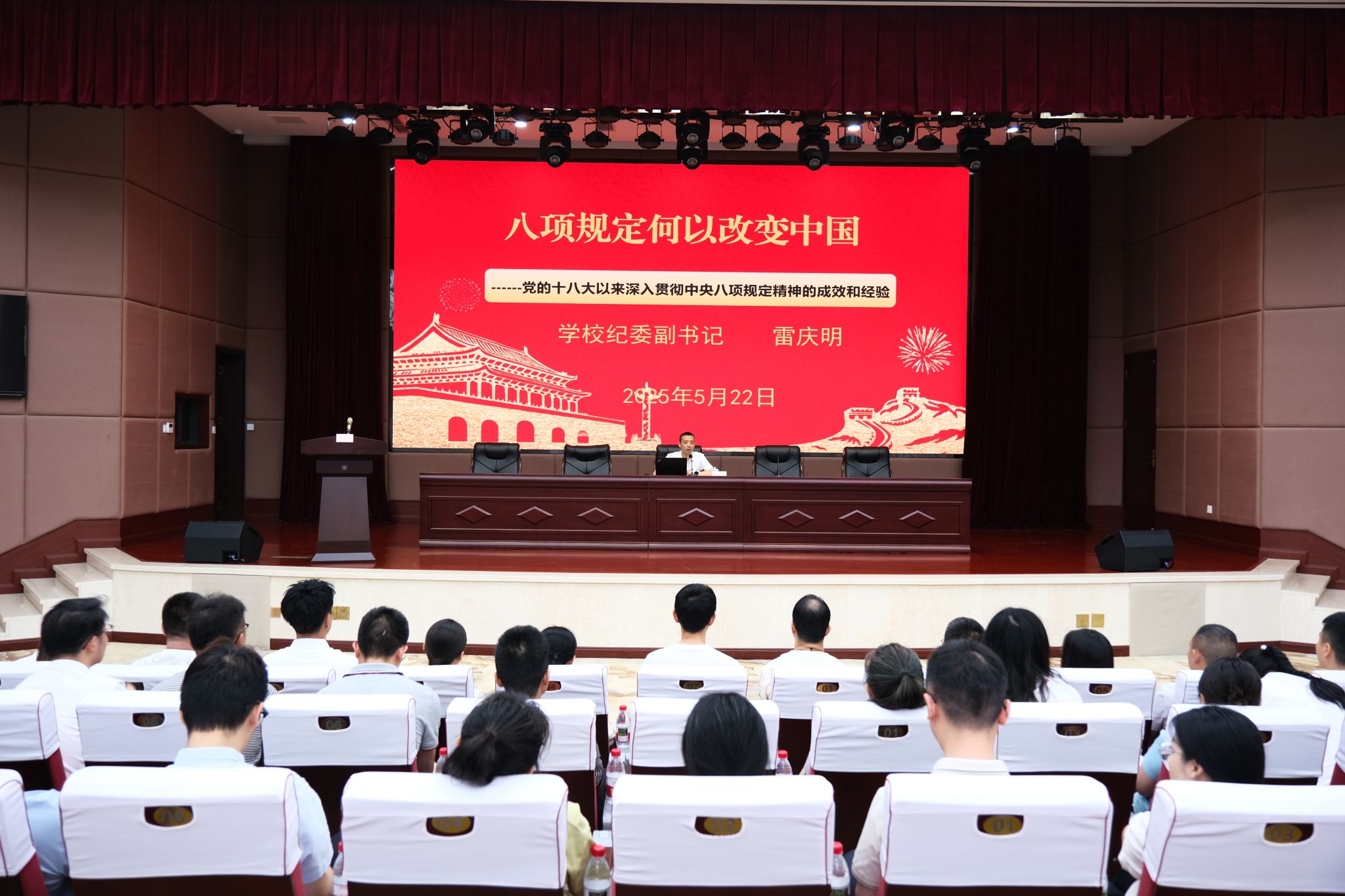 现场见学后,校纪委副书记、纪委办公室主任雷庆明同志以“八项规定何以改变中国”讲授了专题党课,要求全体青年党员干部要从党的十八大以来深入贯彻中央八项规定及其实施细则精神取得的显著成效中汲取党性滋养,扣好廉洁从政的“第一粒扣子”,加强思想淬炼、坚定斗争意志,躬身实践实战、锻造斗争本领,廉洁干净干事、增强斗争底气。