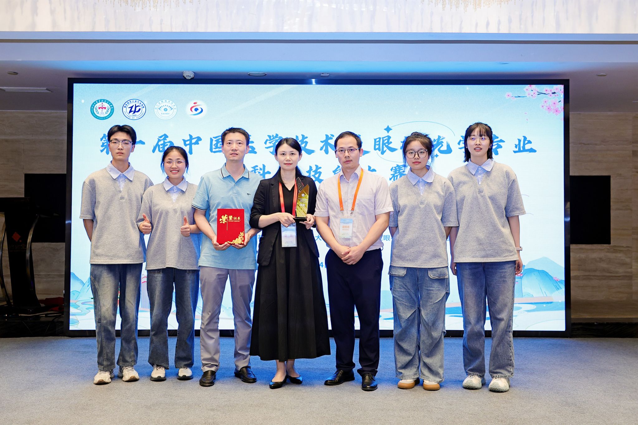 经过全天的紧张比拼,我校眼视光医学院代表队最终获比赛金奖。