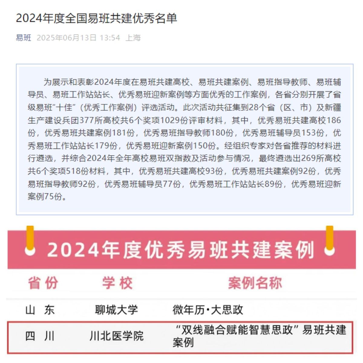 近日,全国易班网公布2024年度全国易班优秀工作案例,我校“双线融合赋能智慧思政”易班共建案例喜获2024年度全国优秀易班共建案例。