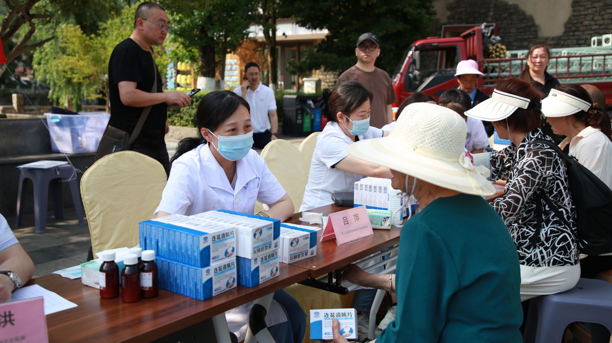 在汶川县中医院前的广场上,义诊活动有序开展。医疗专家们充分发挥专业优势,为当地百姓提供细致入微的医疗服务。他们耐心地为群众测量血压、检测血糖和尿酸,认真倾听患者的症状描述,详细解答各类医学知识。针对群众常见的高血压、糖尿病等多发病,专家们不仅给予专业的治疗建议,还现场免费发放药品。活动现场,医护人员还向群众发放健康知识宣传单,帮助大家提升自我保健意识。