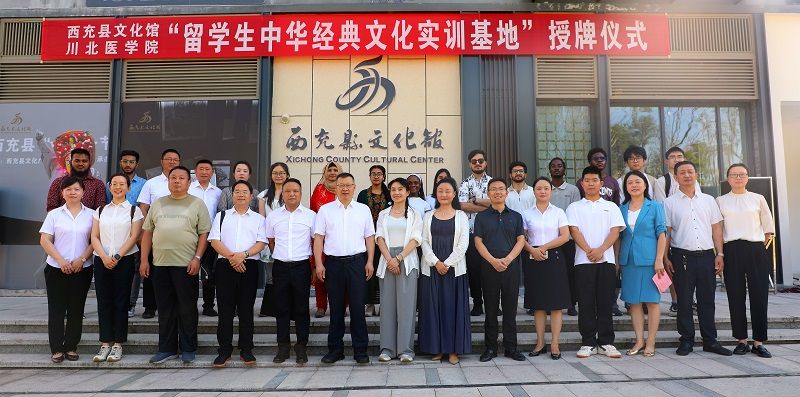 7月4日上午,川北医学院与西充县文化馆在西充充国里·有机生活街区西充县文化馆成功举行来华留学生中华经典文化实训基地挂牌仪式。学校党委副书记、工会主席黄平,西充县人民政府副县长李莉,学校校地合作处、国际教育交流学院负责同志及教师代表,以及来自巴基斯坦、孟加拉、加纳等国的10名留学生代表参加了授牌仪式。