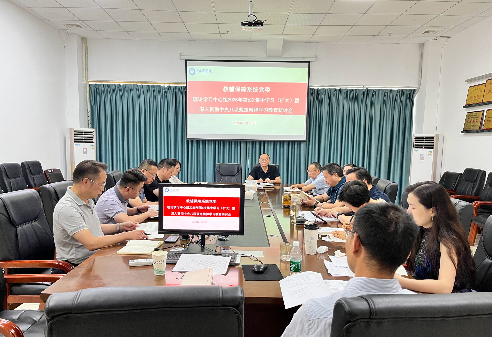7月11日,教辅保障系统党委理论学习中心组举行2025年第6次集中学习(扩大)会,深入学习贯彻习近平总书记重要讲话和重要指示批示精神及省委、学校党委有关工作部署,教辅党委书记陈守云主持会议,理论学习中心组成员、所辖部门副处级以上干部、党支部书记、组织员等参加会议。