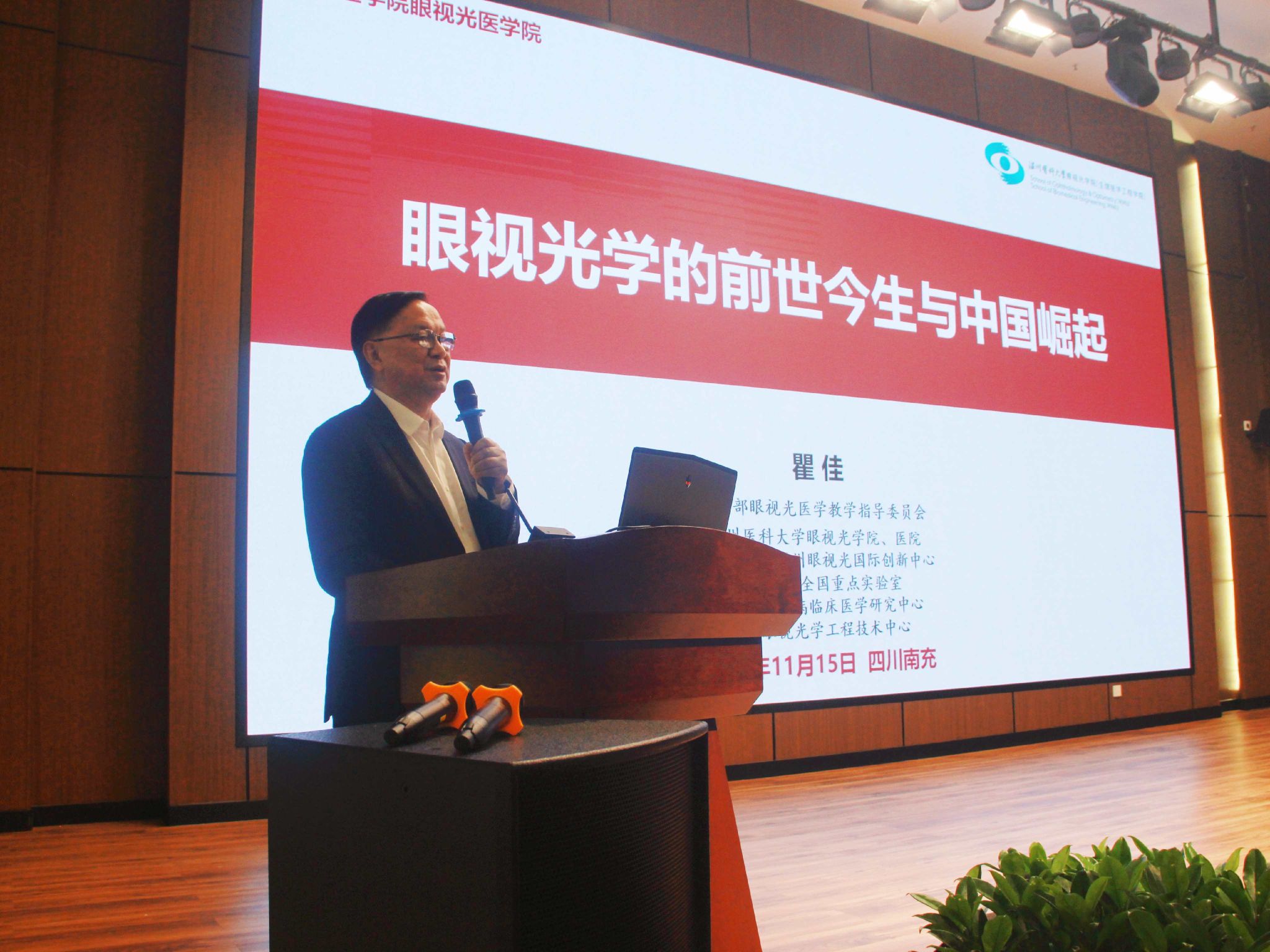 11月15日,教育部眼视光医学教学指导委员会主任委员、我国眼视光医学领域的重要奠基人、温州医科大学原校长瞿佳教授受邀到访我校,为眼视光医学院全体学生带来了一场精彩纷呈的专题学术报告。学校党委常委、副校长邓世山出席报告会并致辞。报告会由温州医科大学眼视光医学院教育教学部主任袁一民和我校眼视光医学院副院长廖萱共同主持。眼视光医学院学术院长兰长骏教授,学院300余名师生代表参加。