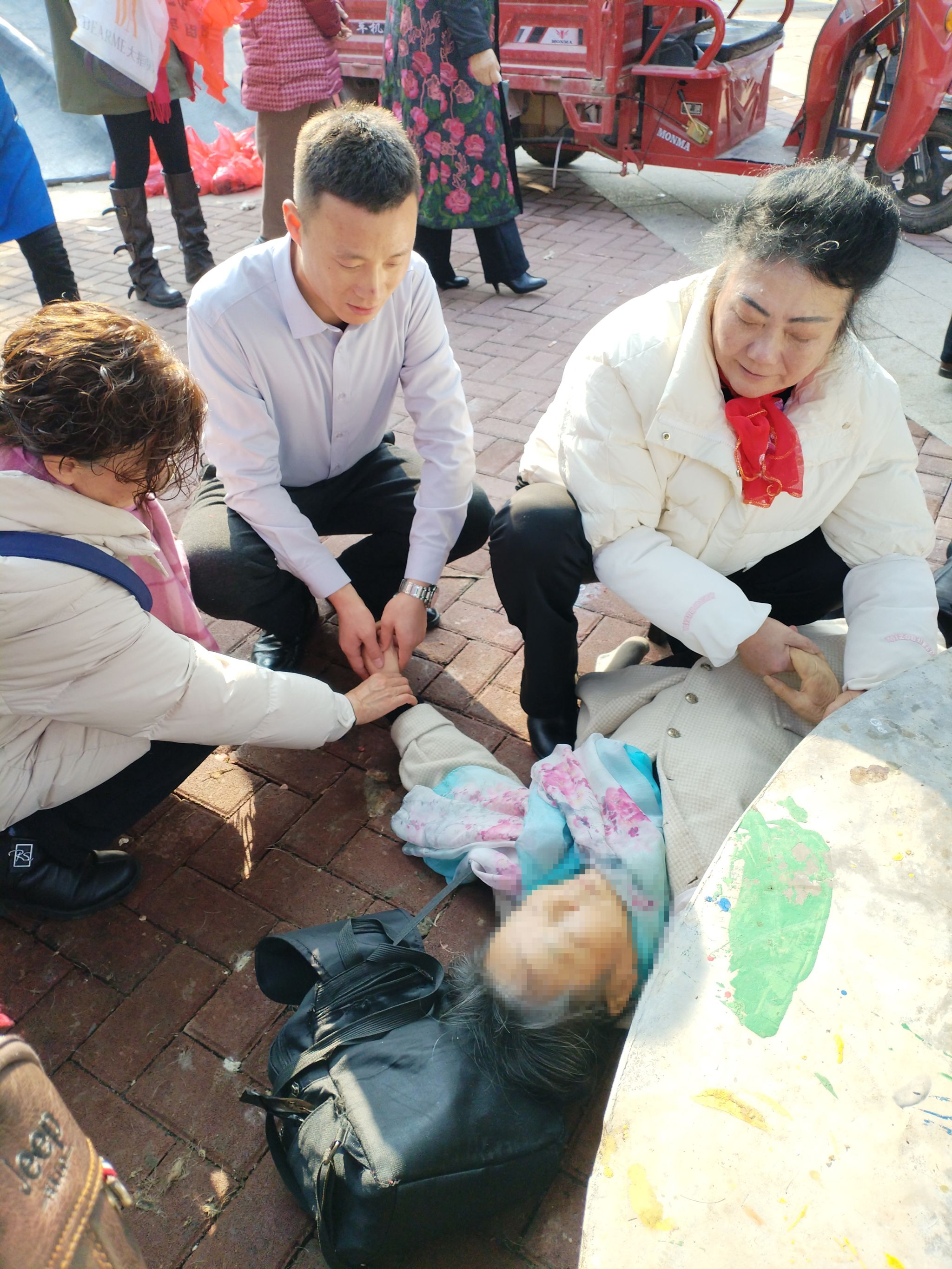 当天午后阳光正好,但郊外的低温仍透着刺骨寒意。下午2点左右,一名70多岁的老人在摊点旁的树下等候时,突然双腿发软,直直倒地。原本在摊点周边有序选购、等候返程的市民见状,瞬间聚拢过来,现场随即响起此起彼伏的呼救声。巧合的是,川北医学院外科教授彭祥玉、眼科教授甘宇业、儿科教授冯大瑛正在现场参加此次杀猪节,听到呼救后,三人第一时间冲向事发地点。