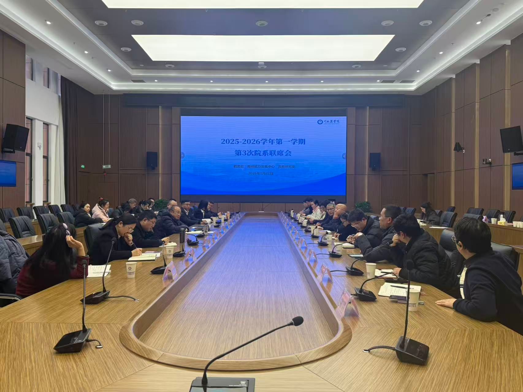 1月22日下午,学校在临江校区行政楼108会议室召开2025-2026学年度第一学期第三次院系联席会议。学校党委常委、副校长张波出席会议并讲话,相关职能部门、各教学院系负责人、教务处副科级以上干部参会,会议由教务处副处长(主持工作)金波主持。