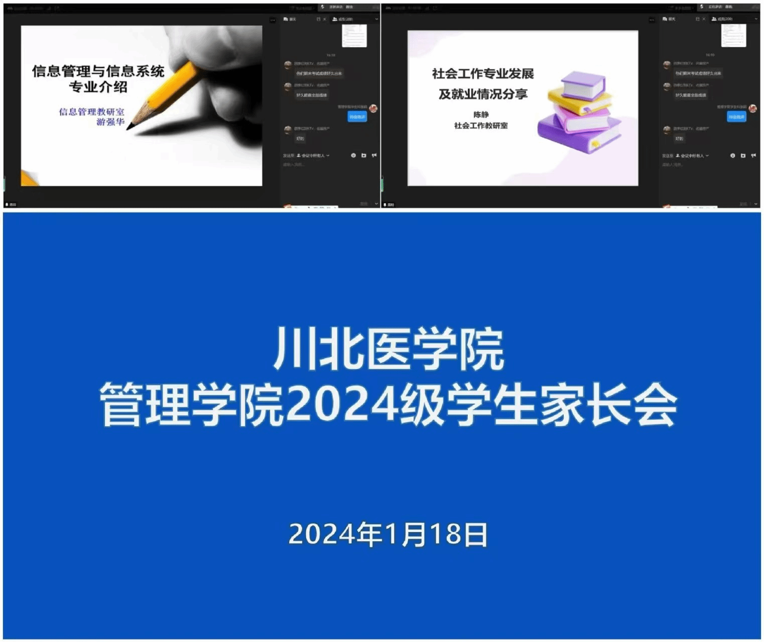 为进一步加强家校沟通,凝聚育人合力。1月18日下午,管理学院通过腾讯会议室举办2024级学生线上家长会,学院党政领导、各教研室负责人、学生科辅导员与200余名新生家长相聚“云端”,共商育人良策。会议由管理学院2024级辅导员张娟主持。