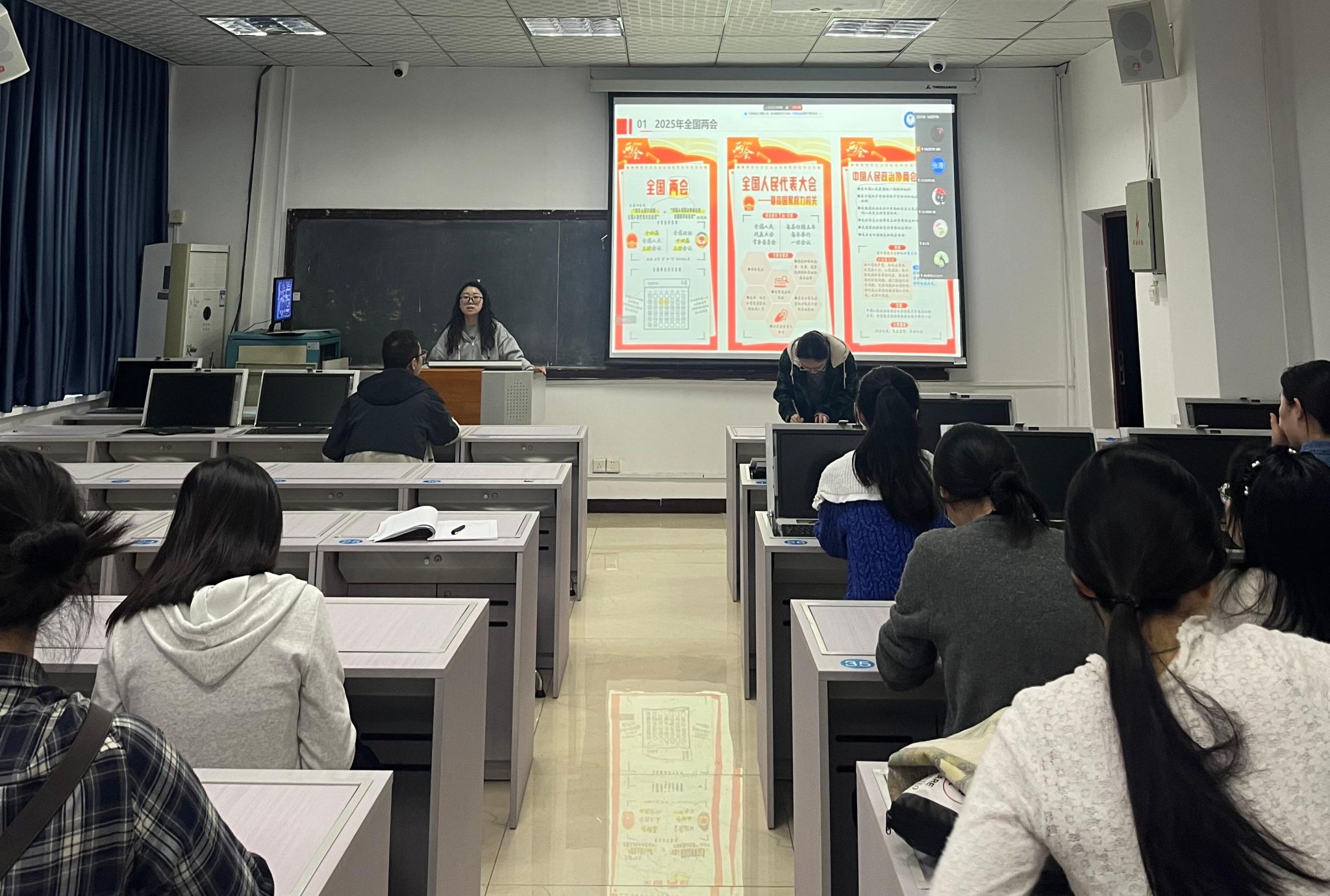 形教课中,辅导员对2025政府工作报告进行详细解读,并结合实例分析了2025年两会聚焦的经济高质量发展、科技创新、民生保障等核心议题,分析其中的新政策、新观点。同时,探讨了 “十四五” 收官、提振消费、人工智能+等2025年全国两会热点关键词,引导同学们关注国家发展方向。