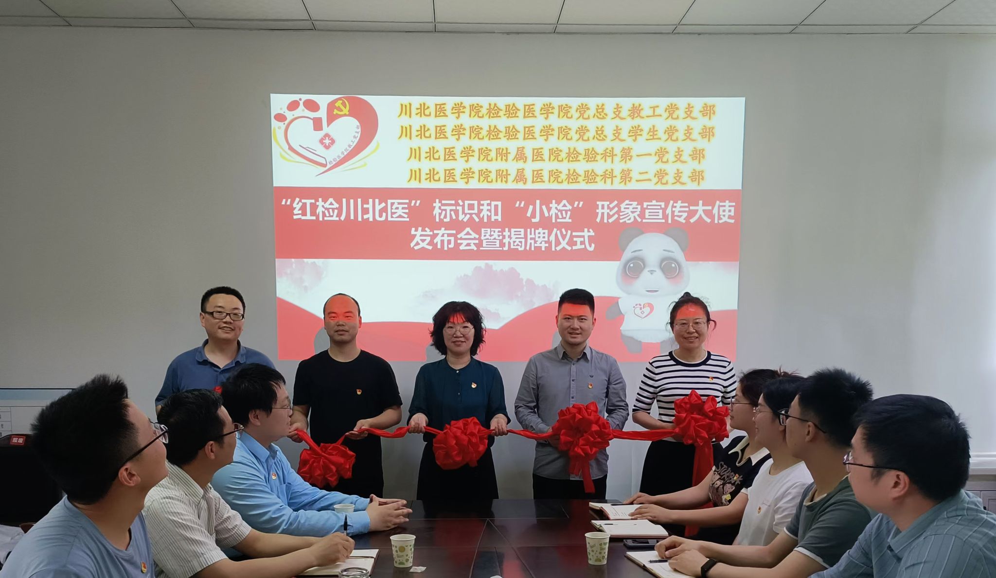 为充分发挥基层党组织的政治堡垒作用,进一步推动基层党建工作走深走实,创造党建引领业务发展新成果,检验医学院党总支围绕 “科研创新引领业务发展的党建品牌”建设理念,聚焦“红检赋能”检验团队临床、教学、科研共育人目标,开启创党建品牌建设新的探索,2025年4月28日,由检验医学院党总支教工党支部牵头,通过跨支部联动方式牵手检验医学院学生党支部,附属医院检验科第一、二党支部形成党建集群,共同举行了——“红检川北医”标识和“小检”形象宣传大使发布仪式。