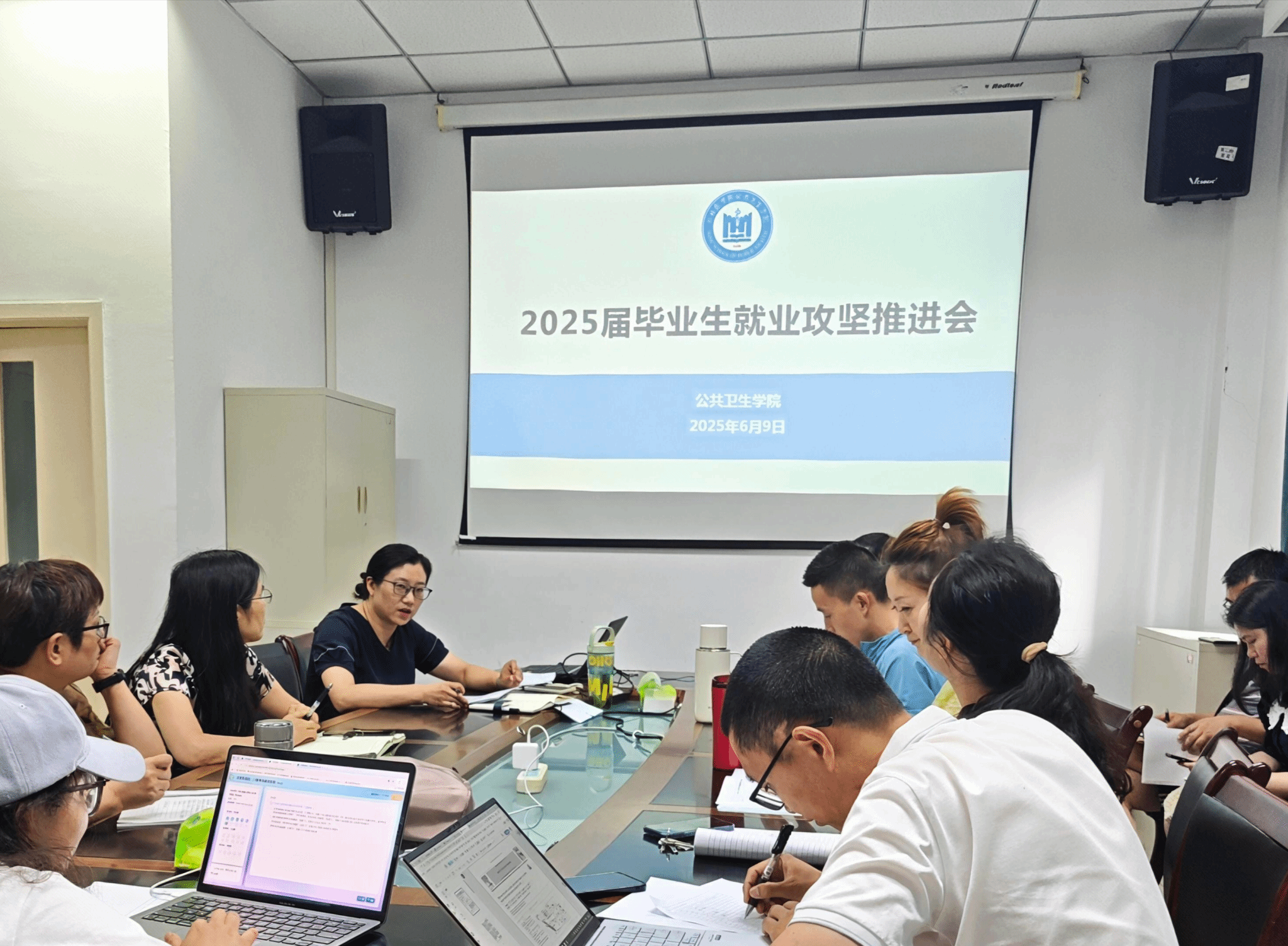 6月9日下午,公共卫生学院在病原中心4楼会议室召开了2025届毕业生就业攻坚推进会,学院党政领导、各科室负责人及学业导师代表参会。会议由党总支副书记王翠翠主持。