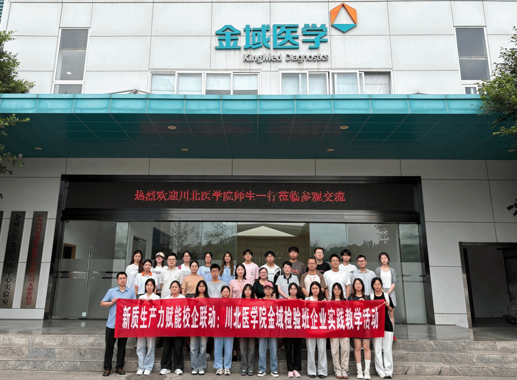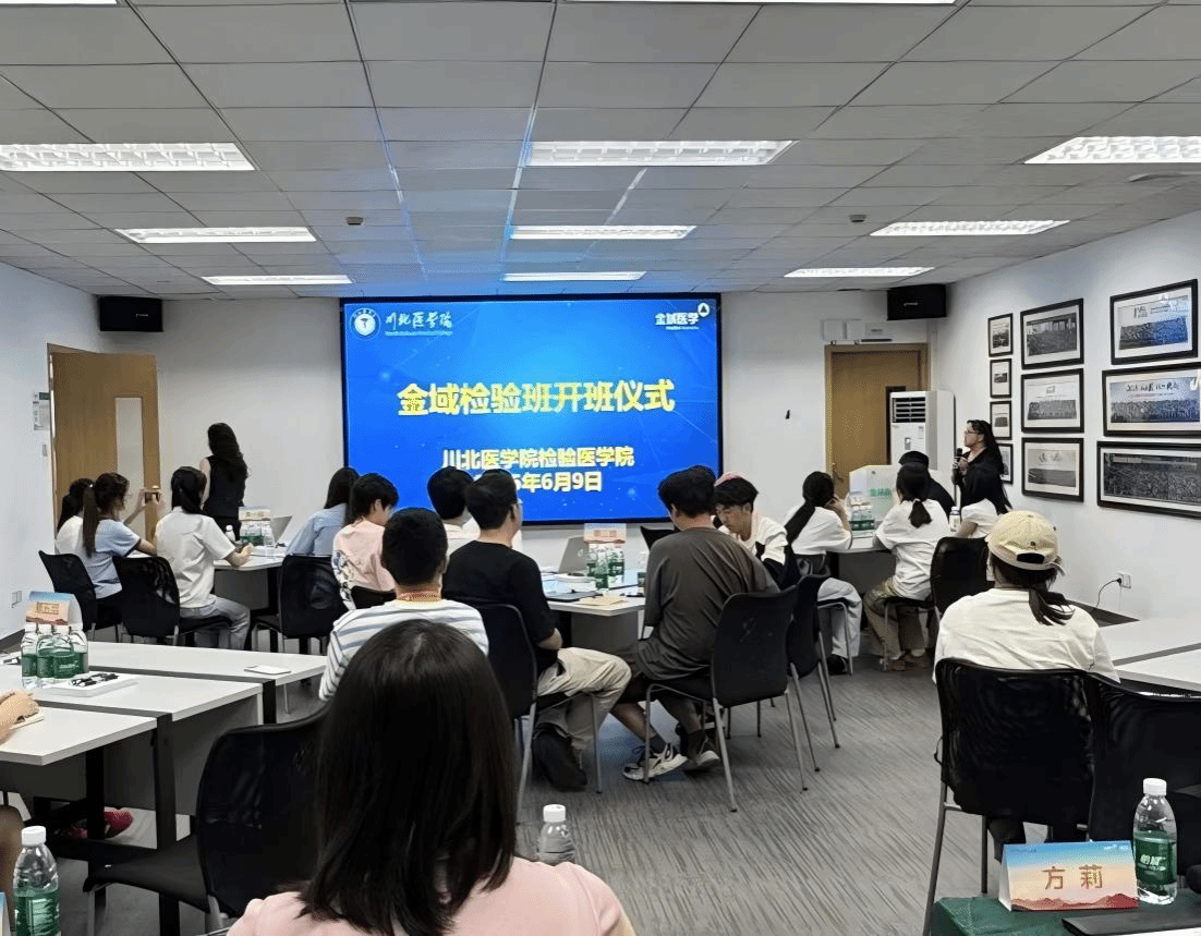 6月9日,我校与金域医学集团携手共建的检验医学产业学院2023级金域检验班开班仪式在四川金域检验公司会议室举行,这标志着我校在深化校企合作、协同育人征程上又迈出了坚实而有力的一步,开启了崭新的篇章。检验医学院副院长方莉、四川金域医学检验中心有限公司副总经理张玮佳、检验医学院骨干教师、22名金域检验班的本科生共同参与此次开班仪式。