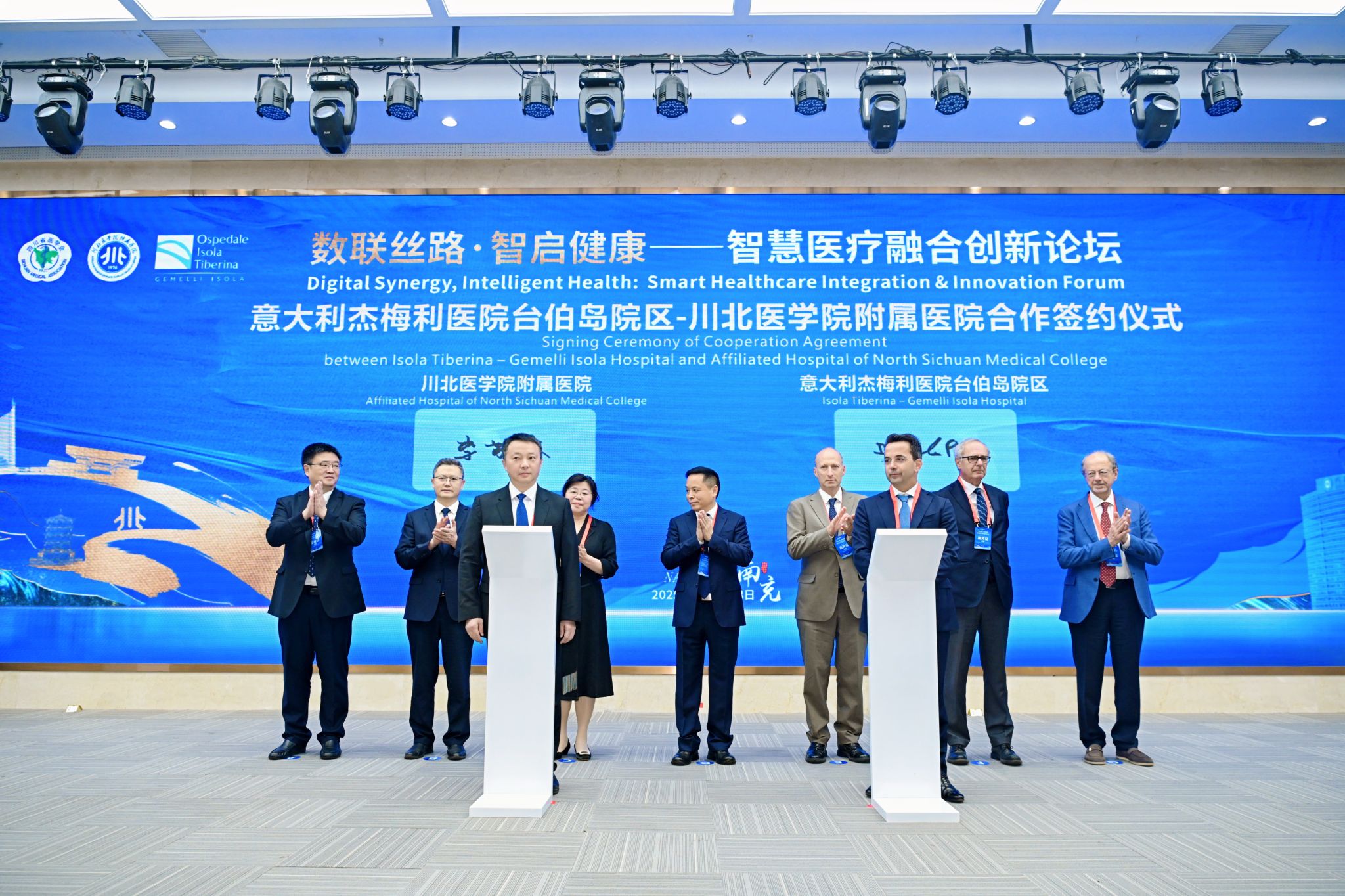 开幕式上,意方代表、川北医学院、四川省卫生健康委、南充市、医院领导先后致辞,一致强调智慧医疗是提升医疗服务质量的关键驱动力,并高度期许两院合作。