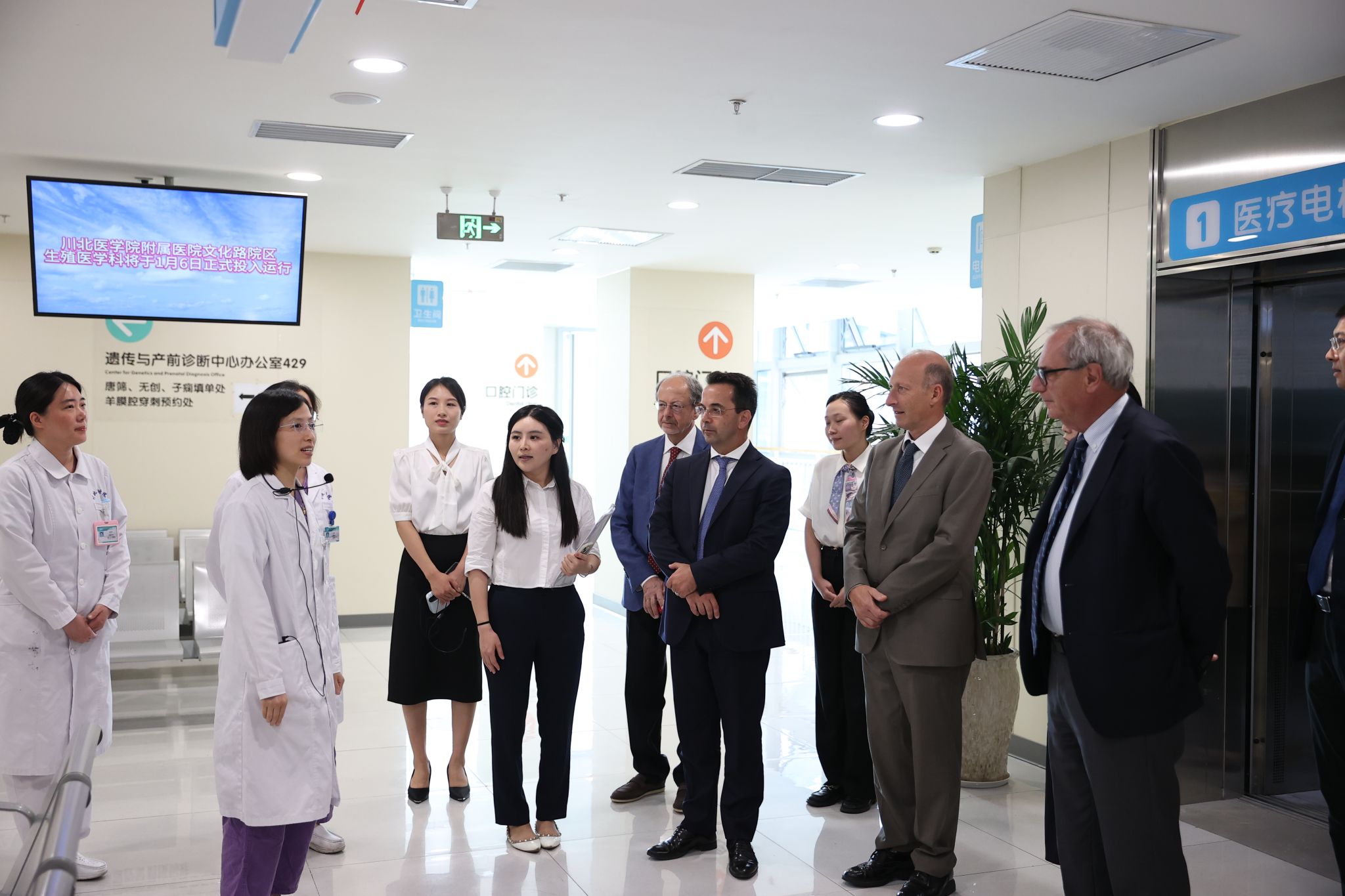 6月12日下午,意大利杰梅利医院台伯岛院区专家代表团一行4人实地考察了医院文化路院区与茂源南路院区,重点参观了介入医学中心、海扶微无创治疗中心、肿瘤科智慧病房、消化内镜中心、生殖医学中心、新生儿科监护室等,对医院在智慧医疗系统及智慧化建设方面的布局与成果留下了深刻印象,为后续合作奠定了直观基础。