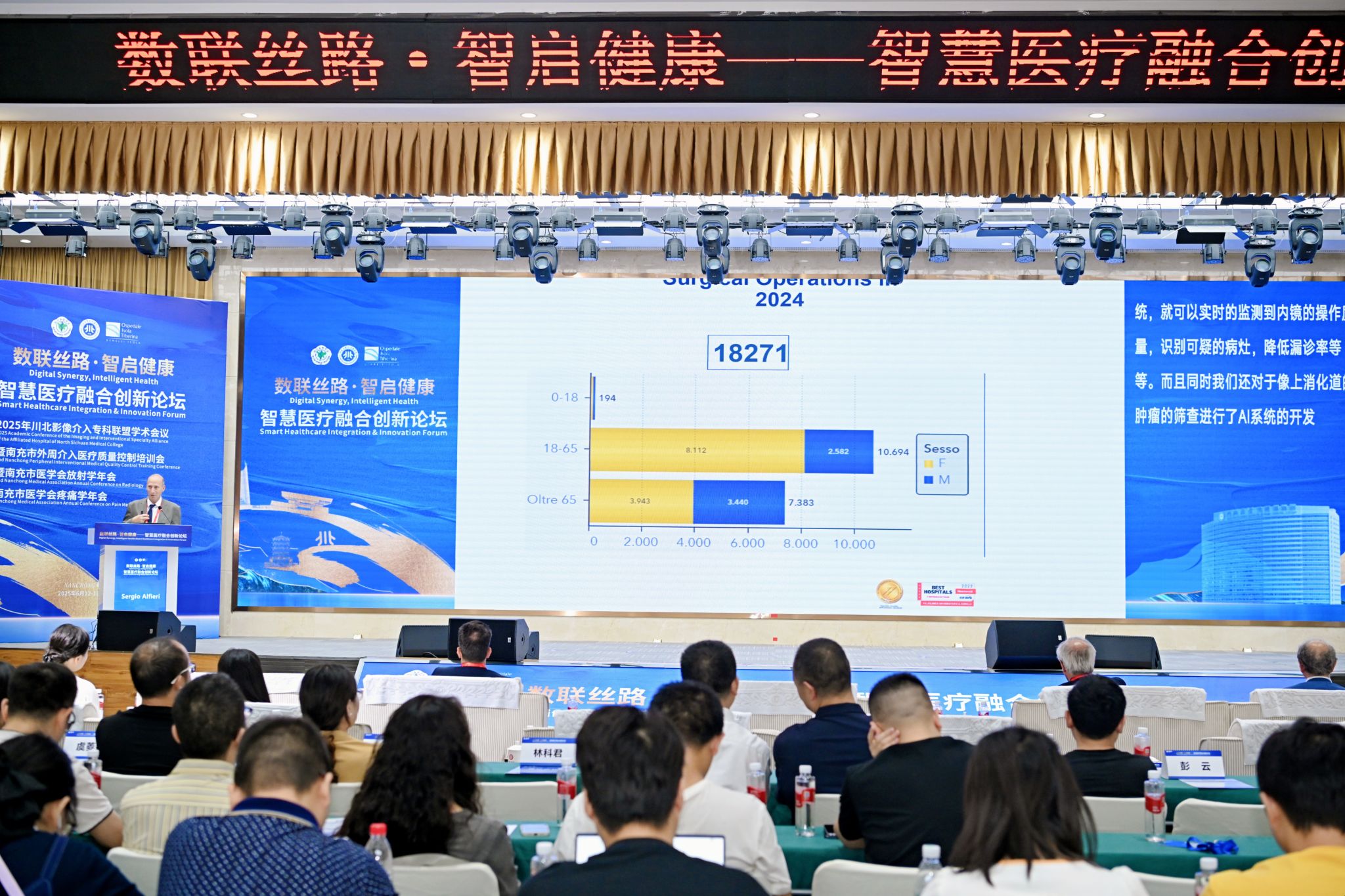 学术交流环节,意方专家Piacentini、Sergio Alfieri、Guido Costamagna、Vincenzo Valentini分别就欧洲智慧医院挑战、AI在肿瘤外科与消化内镜的应用、肿瘤放射治疗新机遇等前沿议题作了报告。四川省肿瘤医院廖洪教授、四川省人民医院曾俊教授、川北医学院附属医院杜勇教授分享了MDT抗肿瘤模式、紧急医学救援发展、肝癌精准诊疗等本土实践与研究成果。中意双方专家的思想碰撞,为智慧医疗的融合创新提供了多元视角与实践路径。