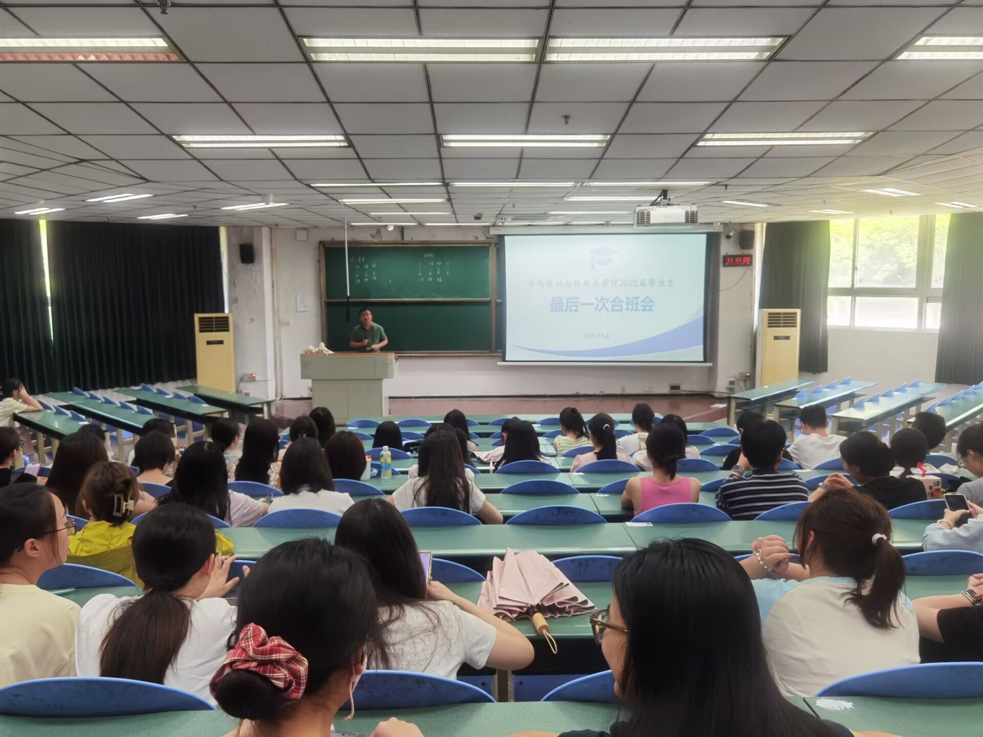 为了给即将踏上崭新人生旅程的的毕业生们提供明晰的离校指南和坚实的安全保障,确保他们平稳、有序、顺利地走完大学阶段的最后一程。6月15日上午11:00,中西医结合临床医学院在高坪校区图信楼202开展了毕业生最后一次班会,2020级全体同学参加,毕业年级辅导员张德军主讲。