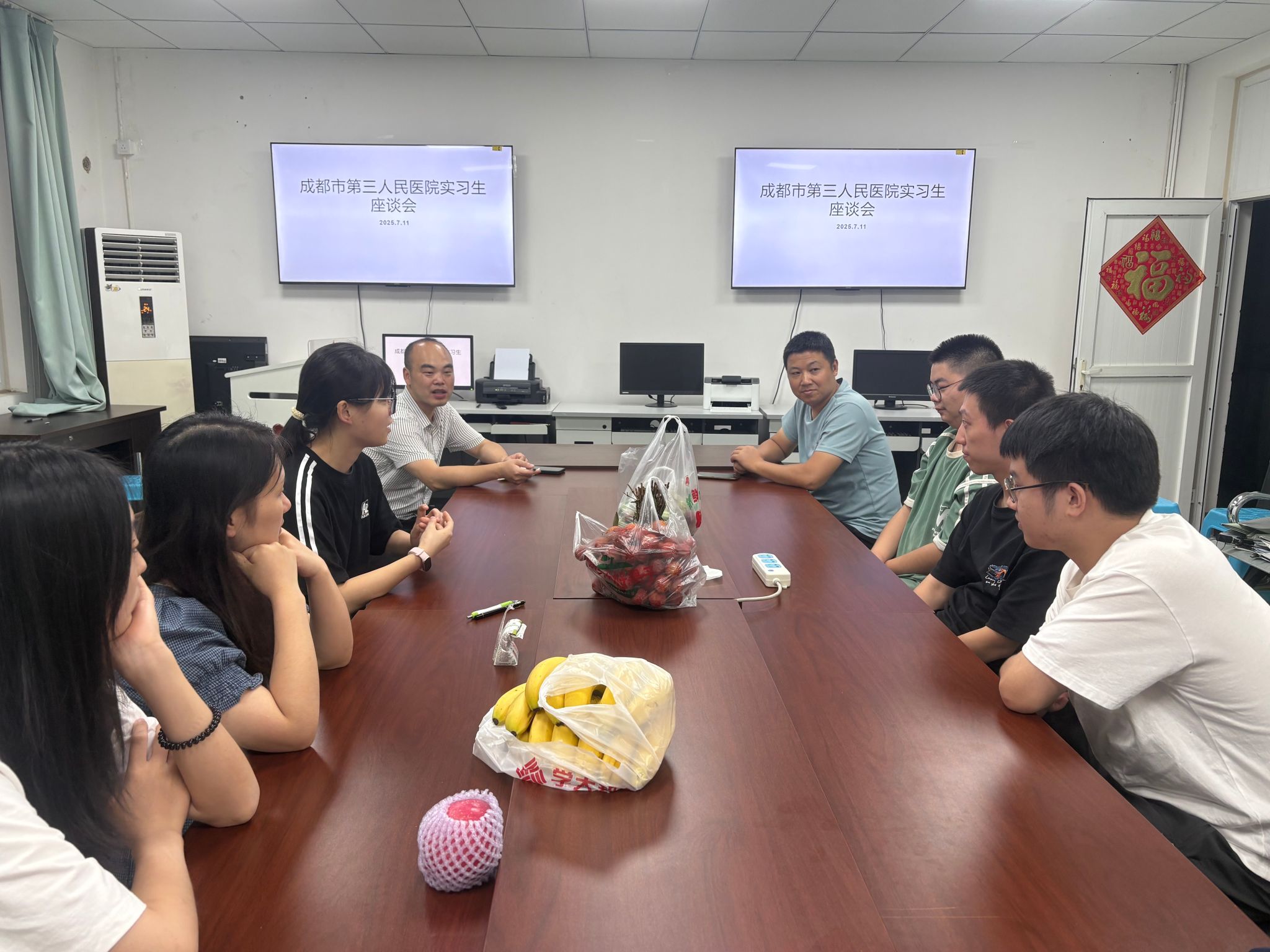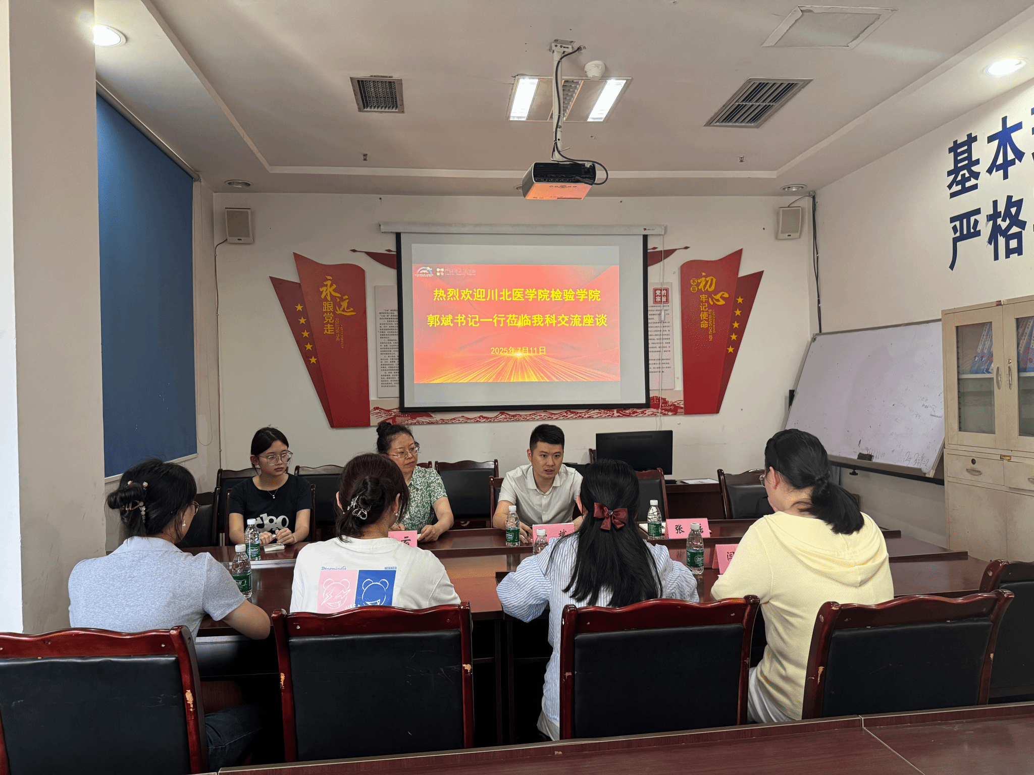 为详细了解实习生工作、生活和思想动态,加强与实习基地的沟通交流,确保实习管理工作的有序开展。近日,检验医学院党总支副书记郭斌、副院长罗光成及教师代表分别赴广安市人民医院、成都市第三人民医院深入了解实习生实习情况,听取实习单位及同学们的意见建议。