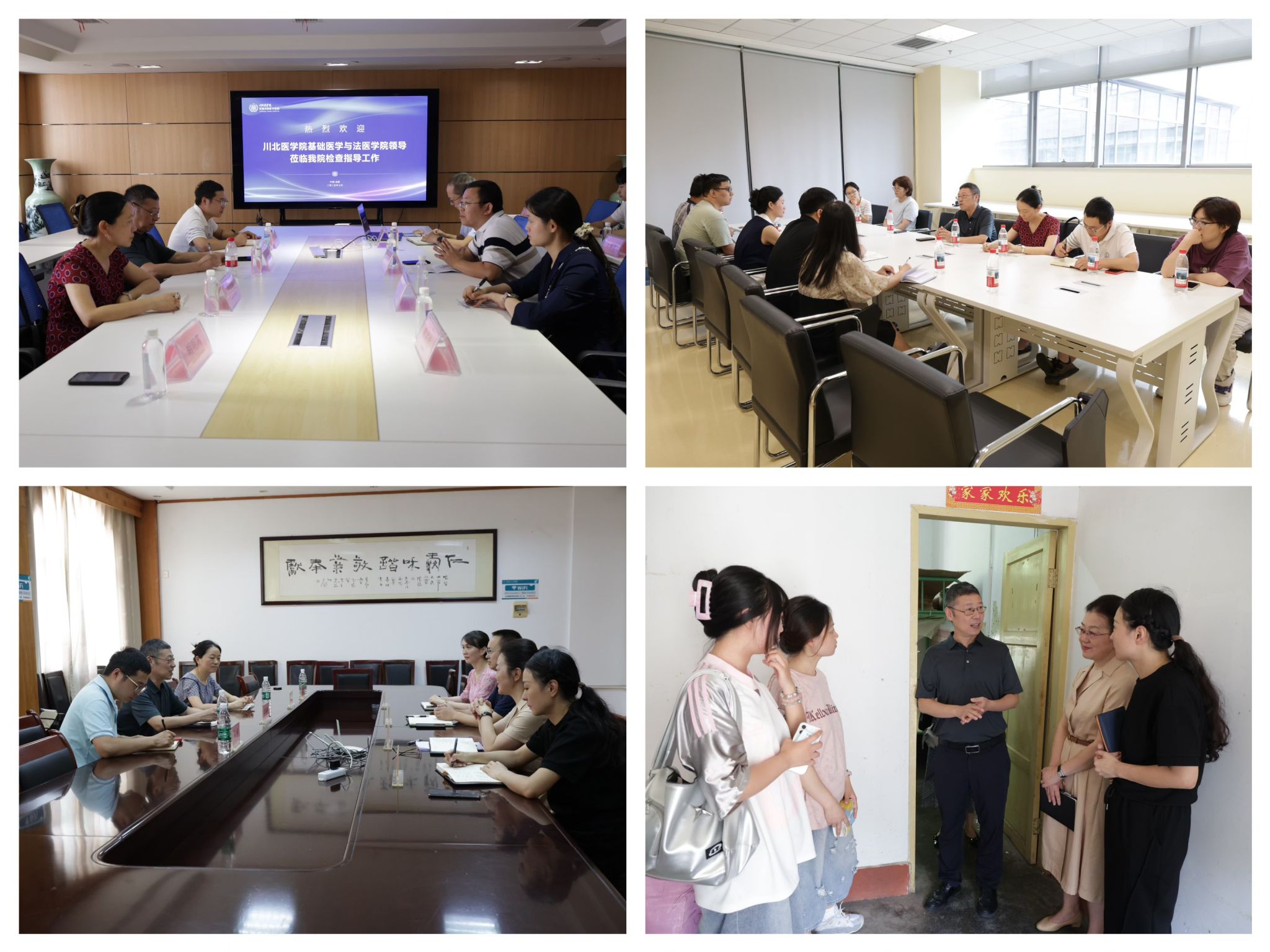 各基地医院对学院一行到访表示欢迎,并详细介绍了医院临床教学和我院法医学专业学生学习实践情况,希望今后双方能持续深化合作,提升实习生培养质量,促进医教协同发展,实现合作共赢。兰海涛一行对实习医院和带教老师对我院学生实习等多方面付出表示感谢,并就我院法医学课程设置、学科特点和学生就业等情况进行了介绍,希望通过医院、学校和学生的三方协同,在法医学专业人才培养模式方面创新更多经验和做法。同时,正在实习的学生们也积极发言,结合自身实习经历,畅谈了在实习中的收获与感悟,反映实习过程中遇到的困难和需求。学院和医院老师们认真听取了学生们的意见和建议,并就实习管理、科室分配、带教重点等方面进行了深入探讨,达成了多项共识。此外,兰海涛一行还实地走访了实习生宿舍,叮嘱学生们要注意个人安全,提前做好个人职业发展规划,在实践中磨砺成长。