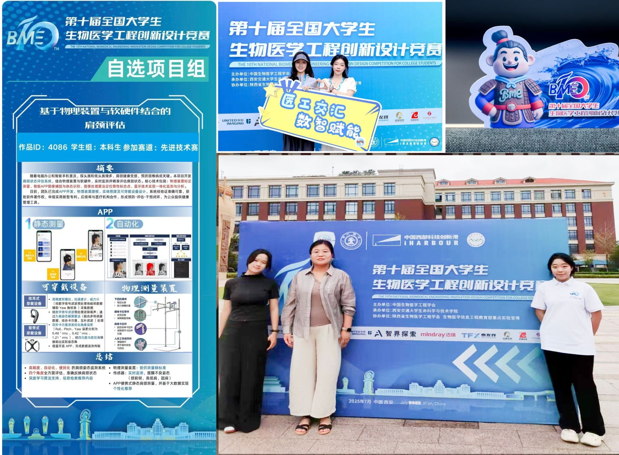 7月22日在西安交通大学落幕的第十届全国大学生生物医学工程创新设计竞赛决赛中,川北医学院医学影像学院梅玉倩老师指导的生物医学工程专业本科生团队荣获全国二等奖!