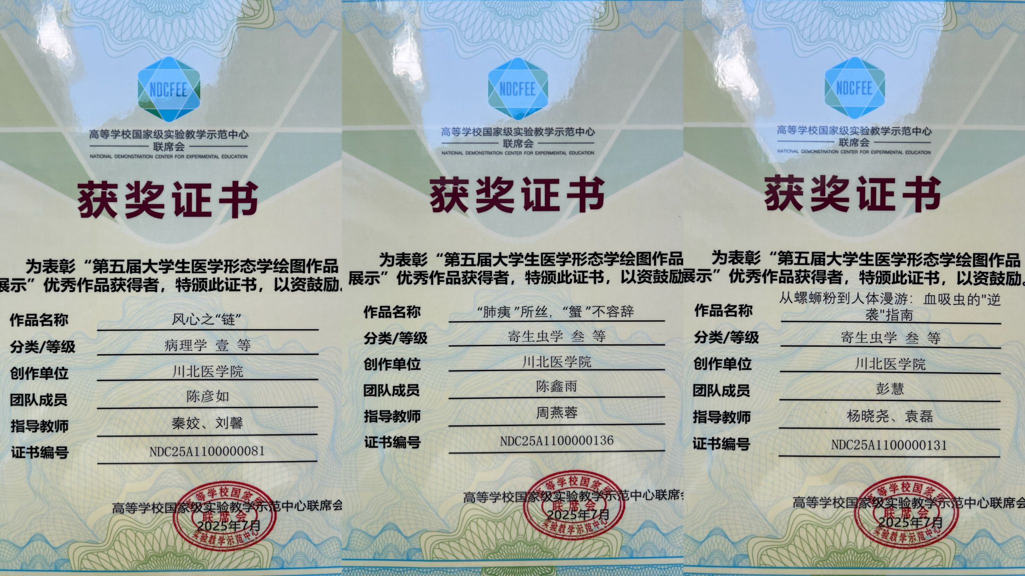 “高等医学院校第五届大学生形态学绘图作品展示”总决赛也同期举行。在97所院校推荐的1361幅作品中,我院秦姣、刘馨老师指导的参赛作品荣获一等奖,周燕蓉老师指导的作品荣获三等奖,杨晓尧、袁磊老师指导的参赛作品亦荣获三等奖。另外,我校获高等学校国家级实验教学示范中心联席会特授予的“优秀组织奖”。