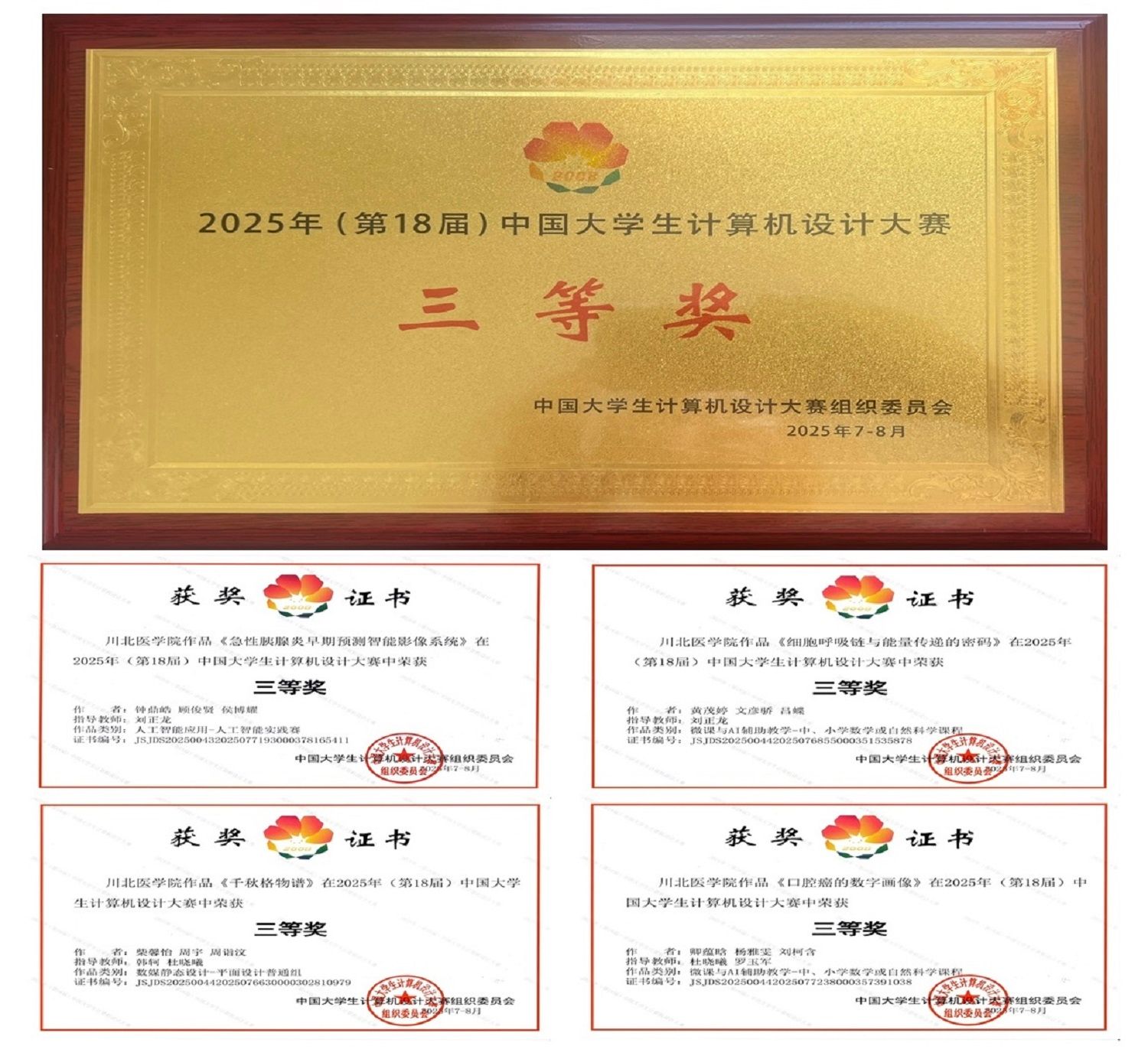 学校高度重视赛事,各部门从资源调配、后勤保障等方面全程护航。基础医学与法医学院计算机教研室教师团队倾注近6个月心血,从选题到打磨全程指导,助力学生突破技术瓶颈。这一成绩不仅是对我校计算机基础课程教学质量的肯定,更是学校推进医工学科交叉、落实“新医科”人才培养战略的生动实践,延续了我校在该赛事中国赛、省赛成果的积累优势。