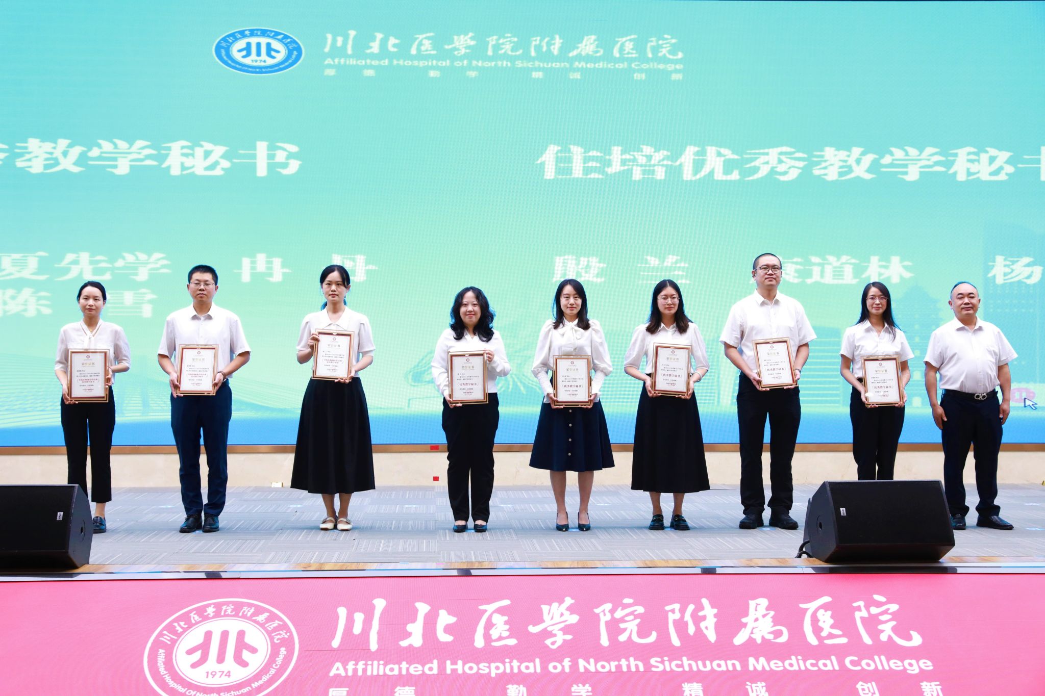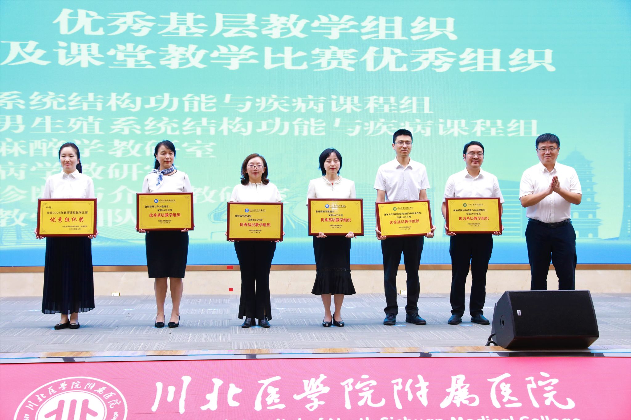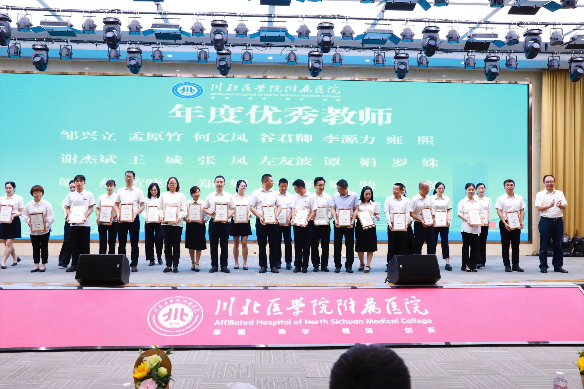 医院领导分别为获得教师课堂教学比赛、优秀技能培训教师、住院医师规范化培训优秀指导教师、教学优秀基层教学组织等多个奖项的先进集体和个人颁奖。