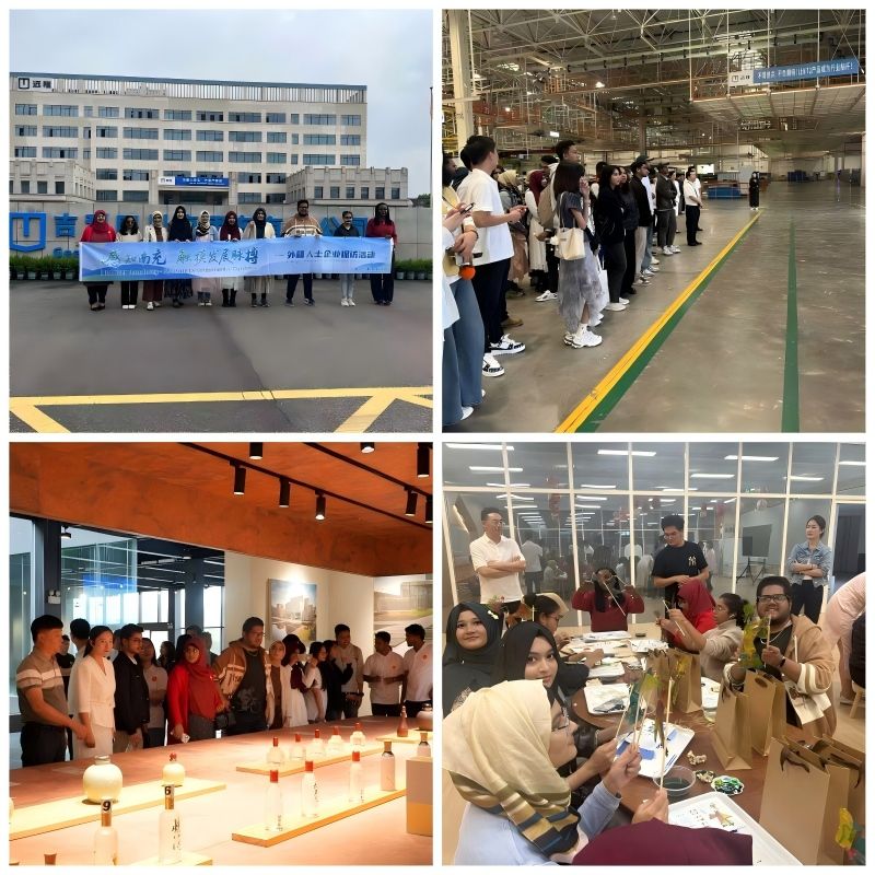上午,留学生们一行抵达吉利四川商用车有限公司。他们走进智能化生产车间,实地观摩新能源商用车的核心制造流程,认真记录并纷纷为南充在新能源领域取得的进展点赞。随后,学生们前往四川凸酒酒业有限公司,通过企业博物馆系统了解了南充白酒的历史渊源与文化内涵,并进入酿造车间观摩传统酿酒工艺,切身感受到“古法酿造”的独特魅力和南充深厚的酒文化底蕴。午后,留学生们来到中科九微科技有限公司。在展示大厅,他们通过丰富的产品陈列和专业的演示片,了解了企业高端产品的实际应用;随后深入生产一线,参观核心部件的精密加工与组装流程,对南充在高端制造领域的技术突破与产业升级成就深感钦佩。最后,学生们走进南充市博物馆,沿“嘉陵长歌”展区系统了解了本地历史文脉,并亲手参与皮影组装实践,在沉浸式互动中体验非遗魅力,近距离感受南充文化的积淀与传承。