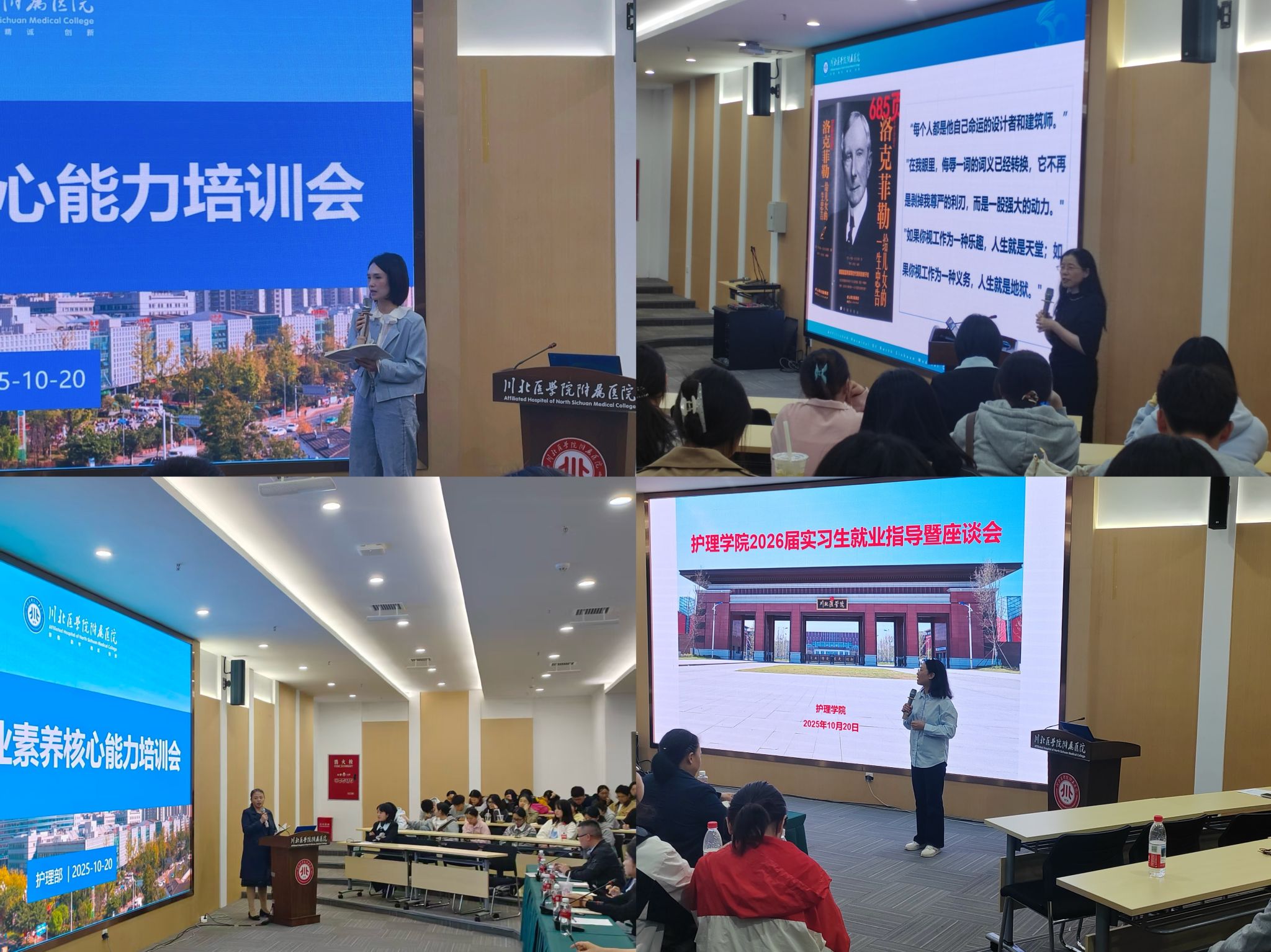 为帮助毕业生以积极心态应对就业挑战,增强就业竞争力,提升职业素养与核心能力,10月20日下午,护理学院在川北医学院附属医院科研教学综合楼308会议室开展2026届毕业生就业指导工作。附属医院护理部、护理学院学生科相关人员以及在附属医院实习的全体同学参会。