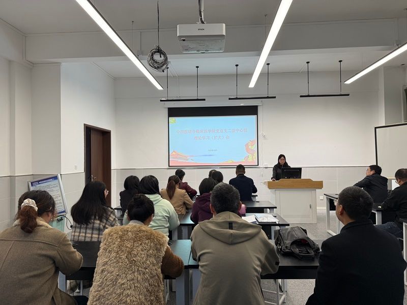 10月29日,中西医结合临床医学院党总支在学校临江书院1号楼南404召开二级中心组理论学习(扩大)会议。二级中心组成员及教职工参加会议。