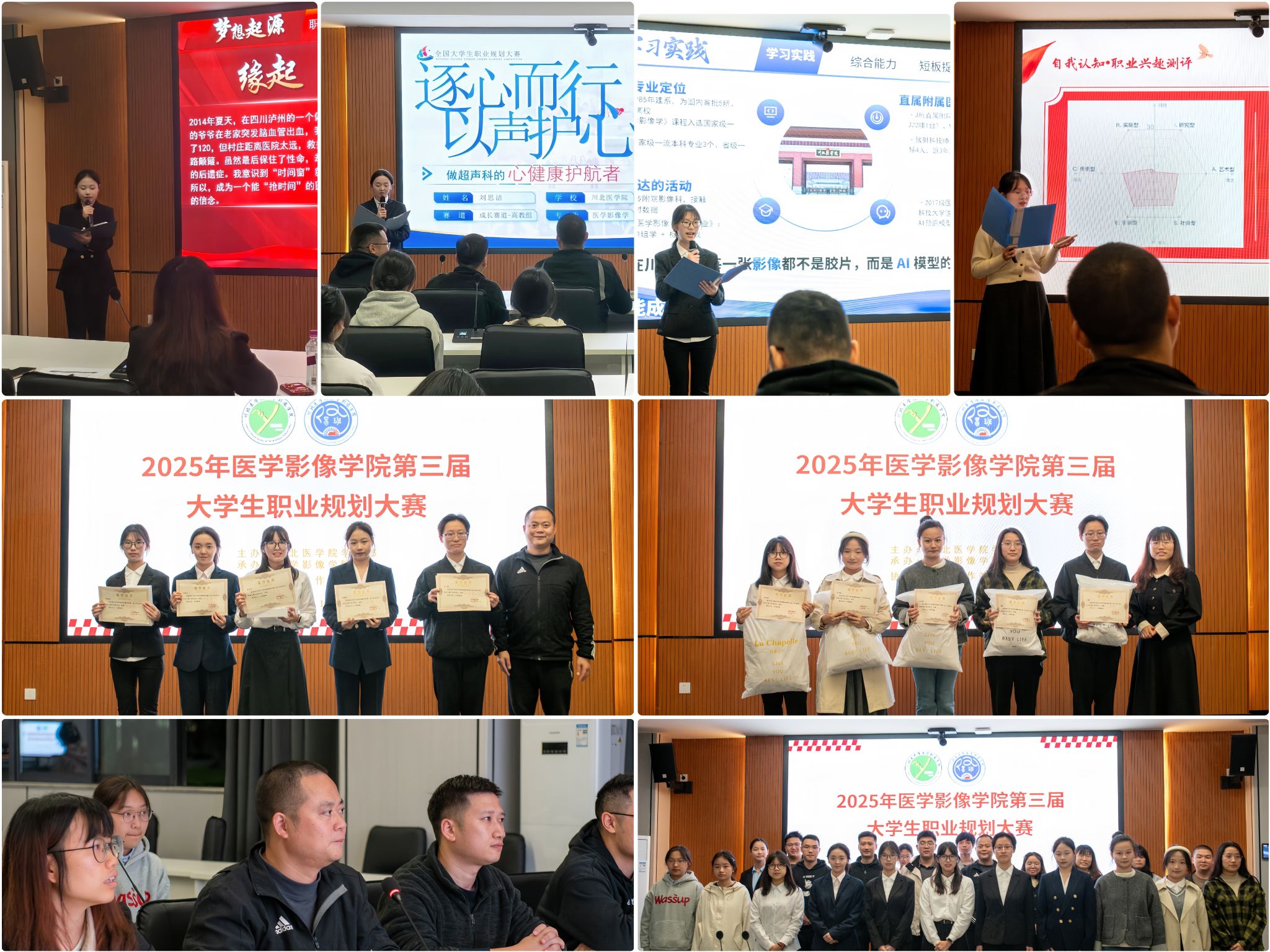 为增强大学生职业规划意识,提升综合素养与就业竞争力,11月11日下午,医学影像学院在临江校区松林书院3号楼南103教室顺利举办第三届大学生职业规划大赛。自启动以来,大赛受到学生广泛关注,累计近400人报名参赛。经过资格审查与书面评审,最终21名选手晋级院级决赛,分别在“成长”与“就业”两个赛道展开角逐。