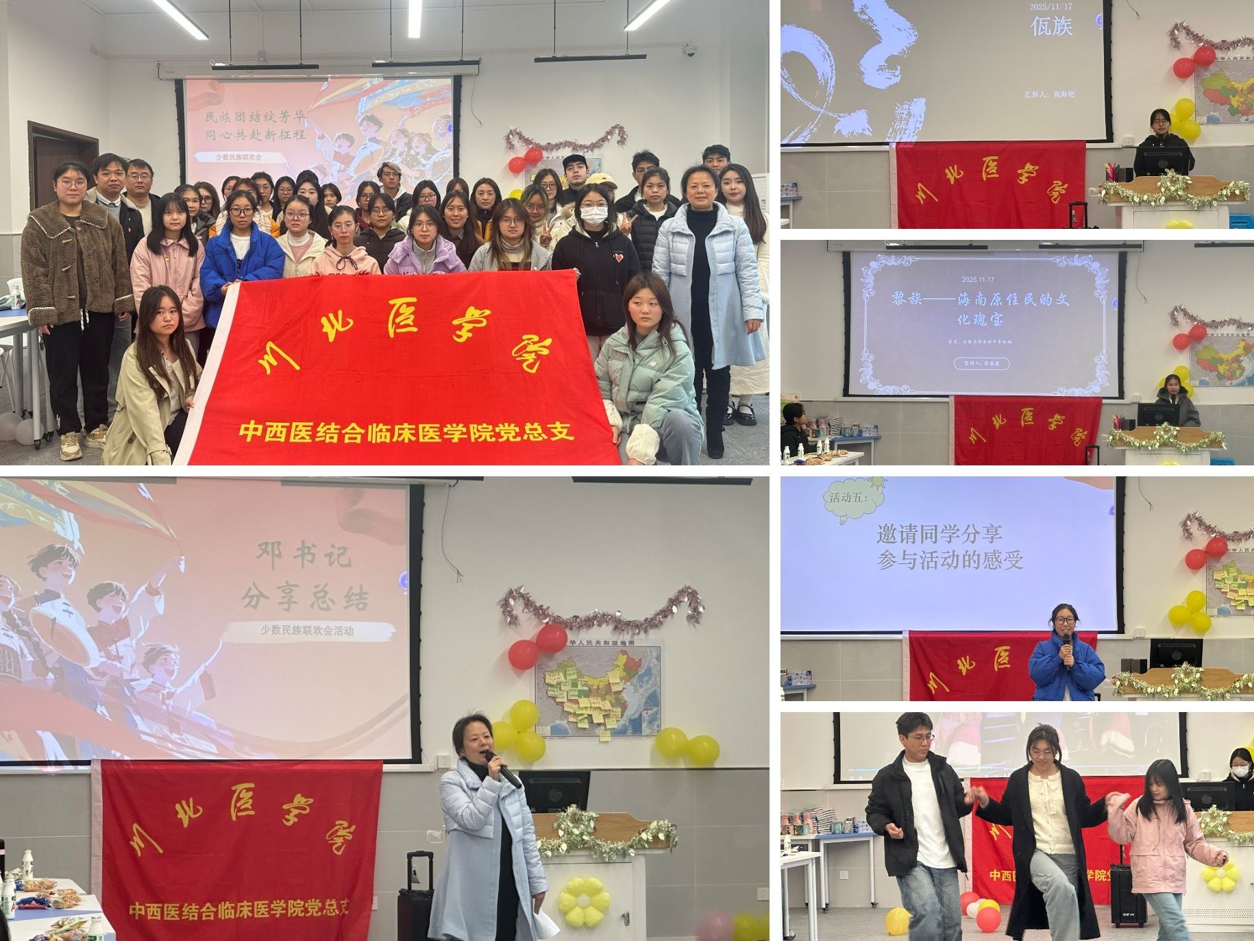 11月17日下午,中西医结合临床医学院党总支于临江书院一号楼南401举办“民族团结绽芳华,同心共赴新征程”少数民族联欢会。各民族师生欢聚一堂,在欢声笑语中共叙民族情深,在文化交融中凝聚奋进共识。