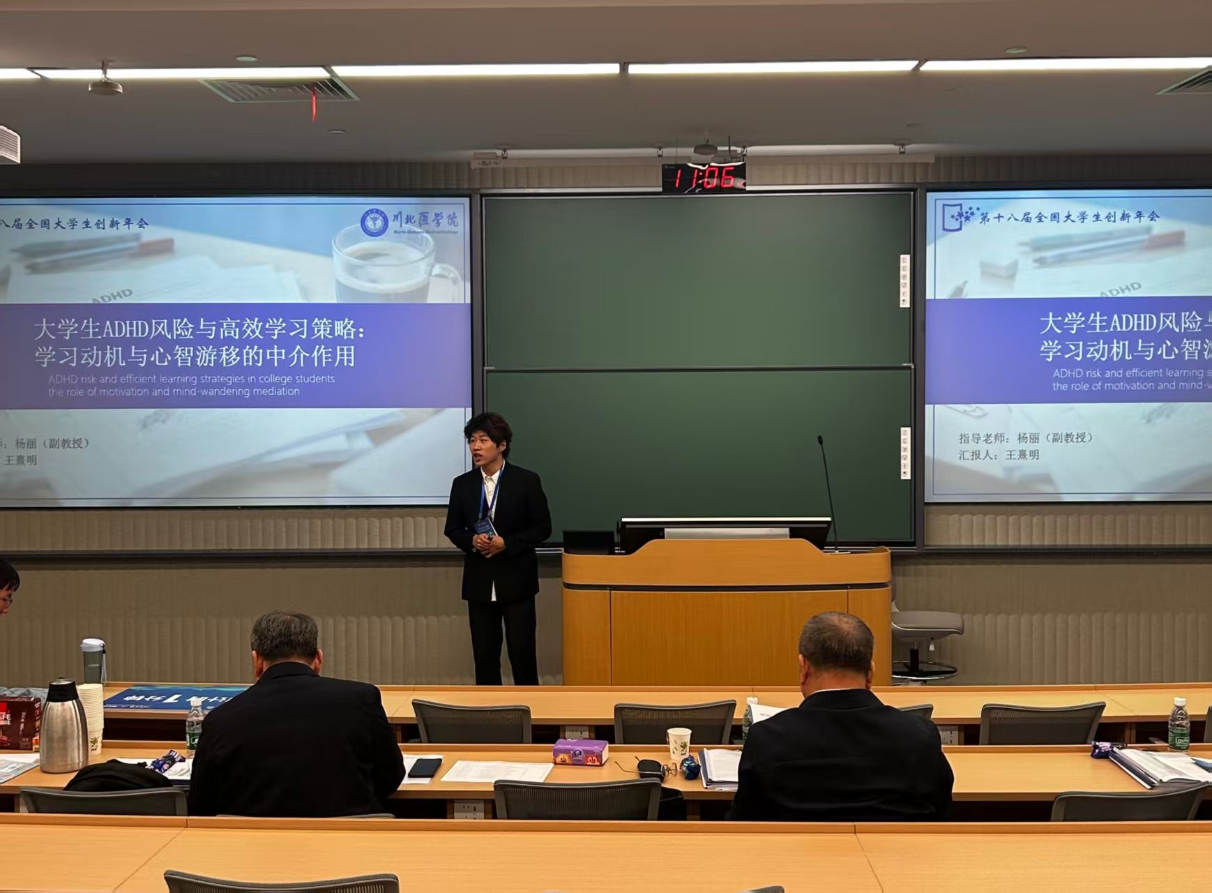 第十八届全国大学生创新年会于2025年11月21日至23日在南京大学苏州校区举行,教育部高教司副司长高斌出席会议。全国共200篇学术论文入选了本次年会。我校管理学院王熹明等同学撰写的论文“ADHD风险大学生学业成绩预测模型及机制研究”(完成人:王熹明、李鑫旎、刘安妮、薛淼,指导老师:杨丽)成功入选本届年会学术论文项目并进行交流,展现了我校在大学生创新创业教育方面的扎实成效。