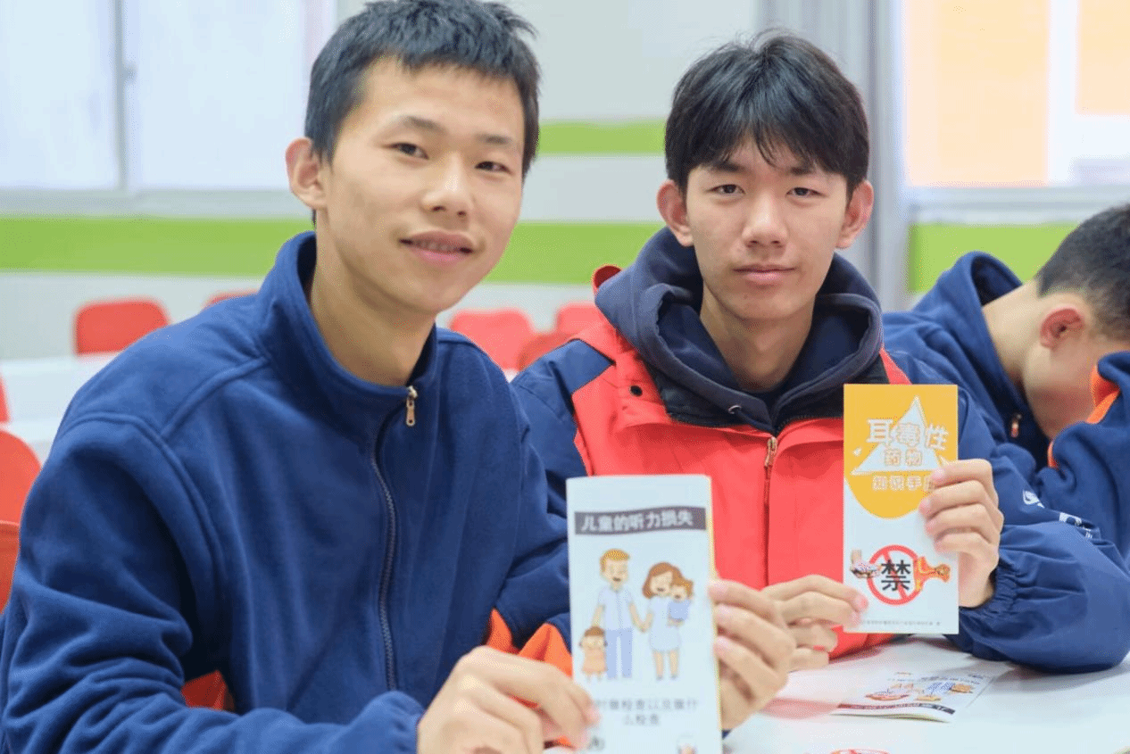 在科普宣讲区,周亿同学向特殊教育学校的师生们娓娓道来耳聋的各类成因——从遗传因素的先天影响,到噪声污染、耳毒性药物、中耳炎等后天诱因,每一个知识点都讲解得细致入微;同时,还日常护耳的小技巧,将实用的耳部保健知识传递给在场的每一个人。此外,还结合专业知识,深入浅出地介绍了助听器、人工耳蜗等助听设备的原理与适配场景,以及听力康复训练的核心意义,让大家对听力康复领域有了更直观的认知。