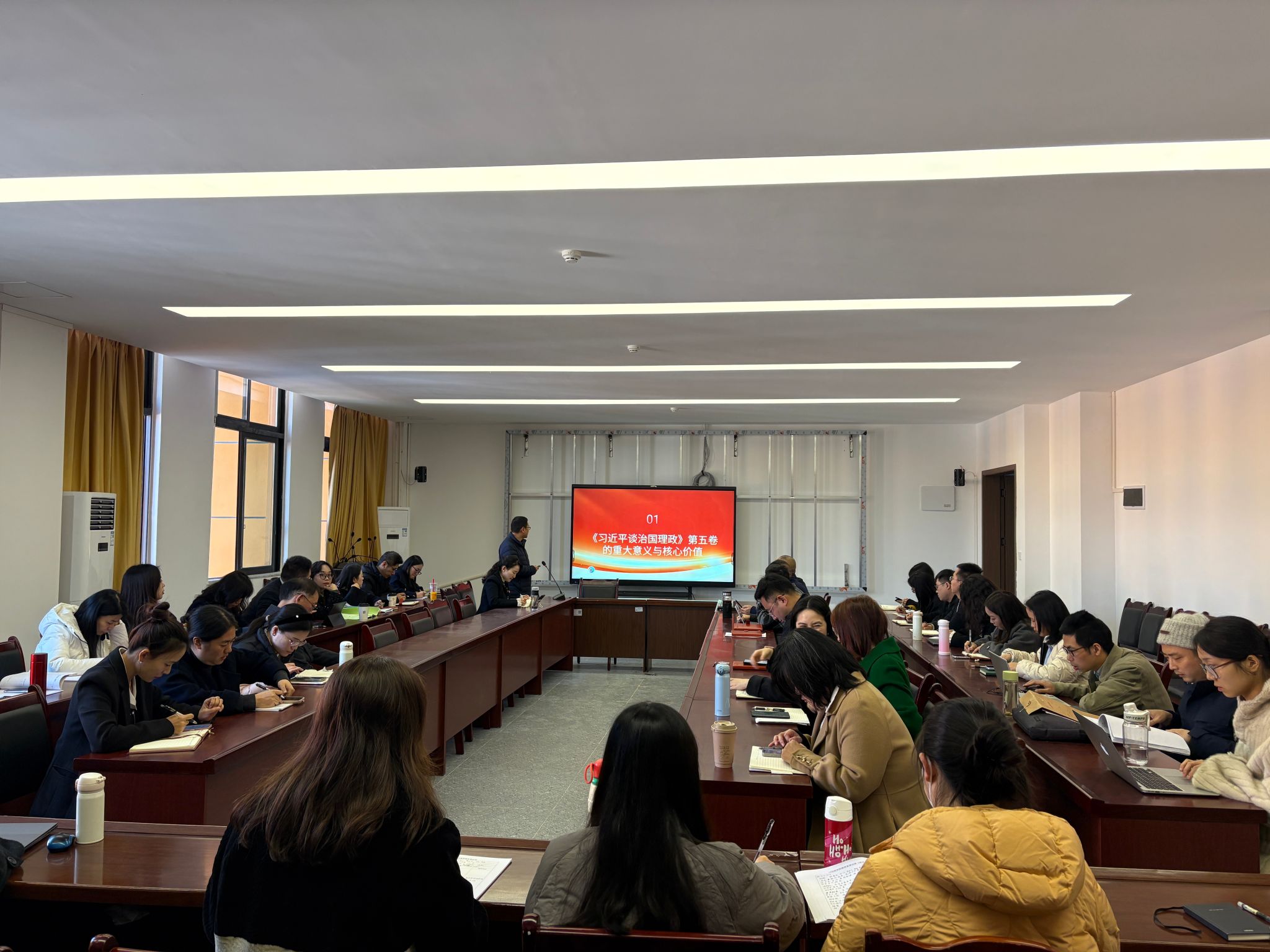 为深入学习贯彻习近平新时代中国特色社会主义思想,加强党总支作风建设和教职工理论武装与思想建设,近日,管理学院党总支在临江校区甘露书院三楼会议室召开理论学习中心组集中学习(扩大)会议。会议由学院党总支副书记敬媛媛主持,全体教职工参加。