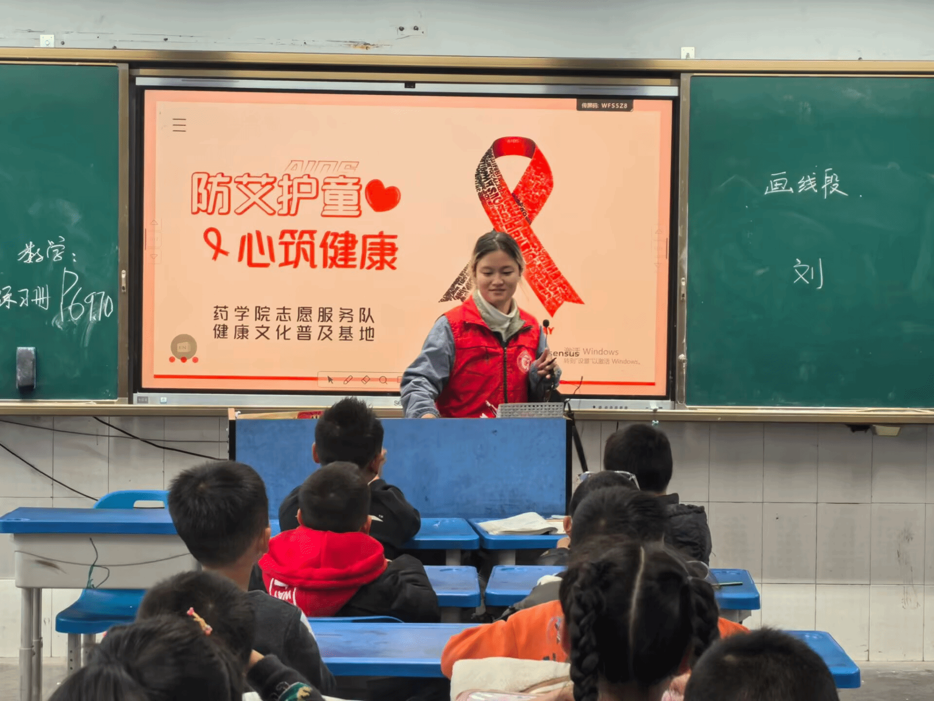 为提高青少年儿童对艾滋病的认知水平,增强自我防护意识,12月2日,药学院志愿服务队联合校健康文化普及基地,在搬罾小学开展“防艾护童,心筑健康”主题志愿服务活动。