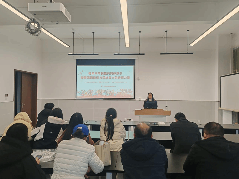 邓海英在讲授中指出,在强国建设、民族复兴的新征程上,铸牢中华民族共同体意识具有深远的历史意义和时代价值。她强调,这一理念是凝聚各族人民智慧力量、维护国家统一和民族团结的精神基石。全体教师必须深刻把握其核心要义,牢固树立“四个与共”的共同体理念,自觉在政治立场、思想认识和实际行动上同党中央保持高度一致,不断巩固和发展团结奋斗的共同思想基础。