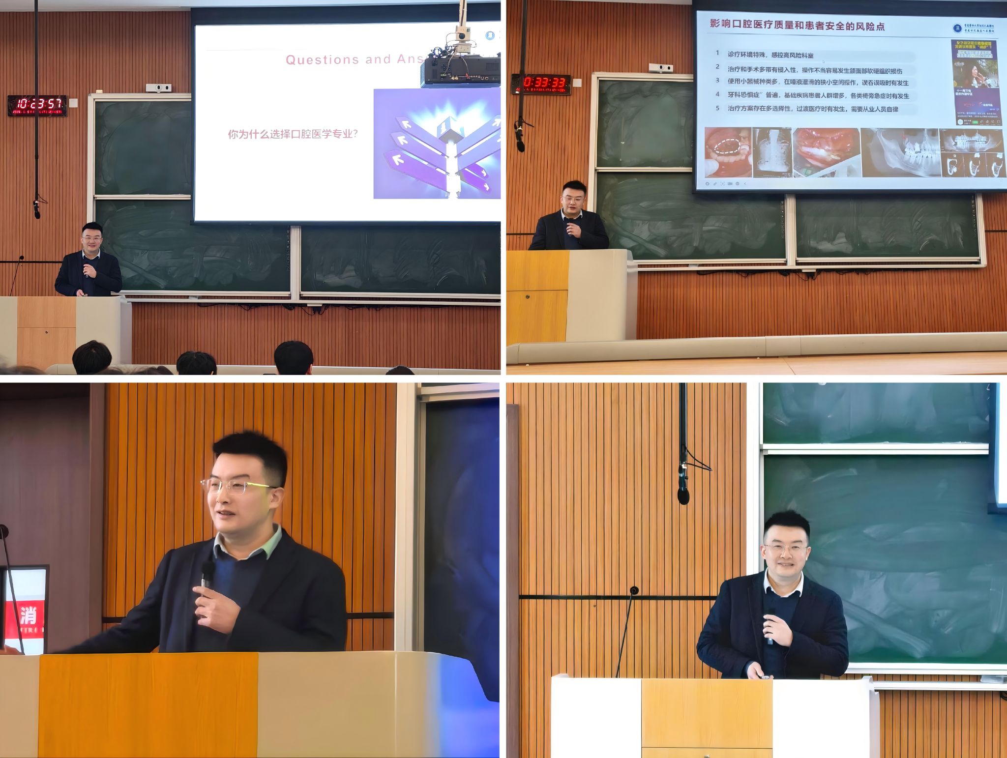 在职业素养部分,袁荣老师指出,随着人工智能等技术日益融入医疗领域,真正构成一名口腔医生不可替代价值的,恰恰是伦理判断、共情能力与团队合作这些人格化素养。“这些不仅是职业底线,更是大家未来实现长远发展的关键竞争力。”他鼓励大家在校期间不仅要精进技艺,更要有意识地培育职业道德,树立起以患者为中心的服务理念,这将使大家在未来的就业市场与执业道路上走得更稳、更顺、更远。
