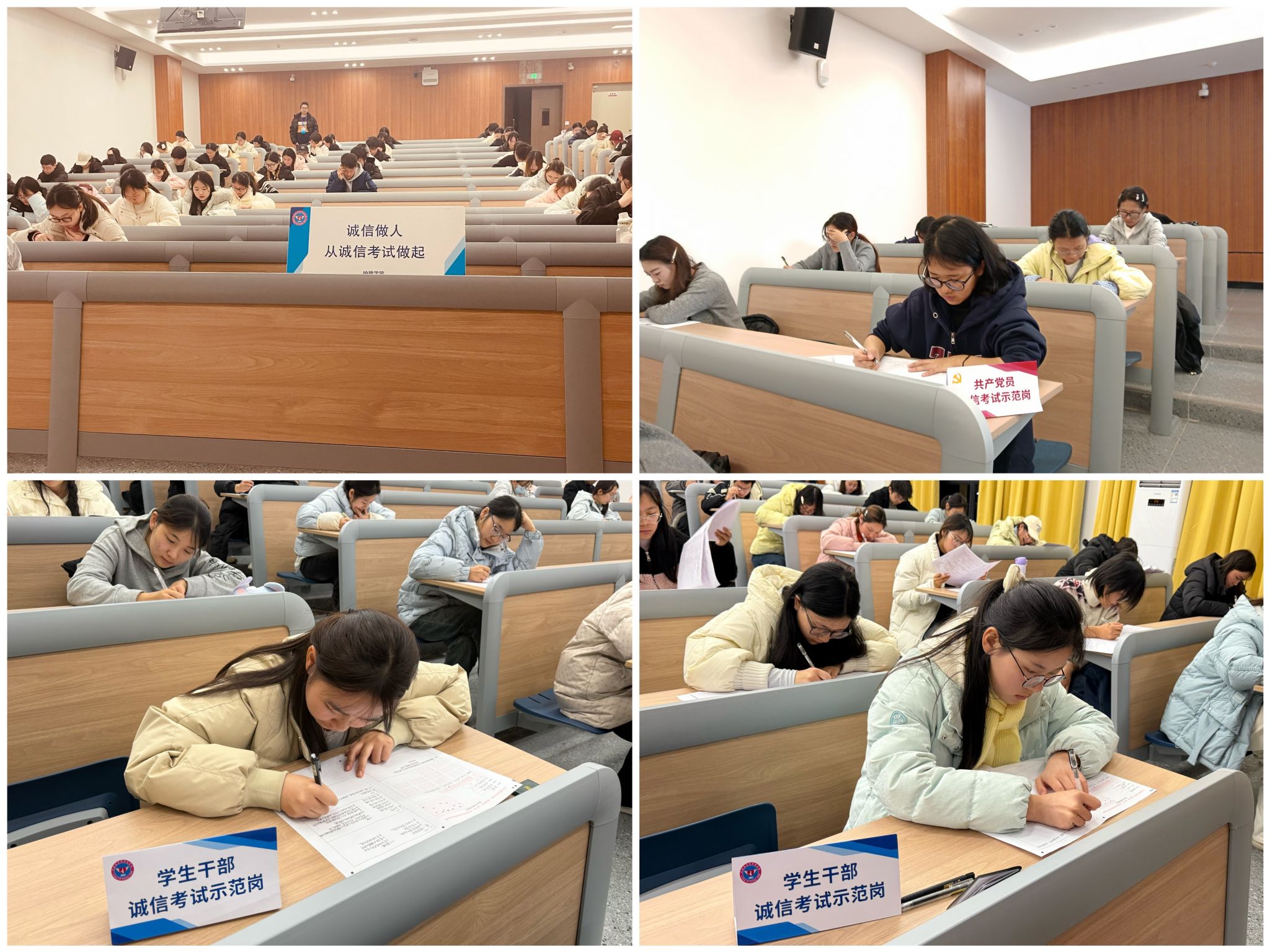 为充分发挥榜样引领作用,活动特别设立党员与学生干部诚信考试示范岗。示范岗成员在考前签写《诚信考试承诺书》,带头遵守考场纪律,主动协助老师维护考场秩序,以实际行动践行诚信誓言,发挥“一名党员一面旗、一名干部一盏灯”的先锋模范作用,以点带面带动全体学子坚守诚信底线,营造“人人讲诚信、个个守纪律”的优良考风。