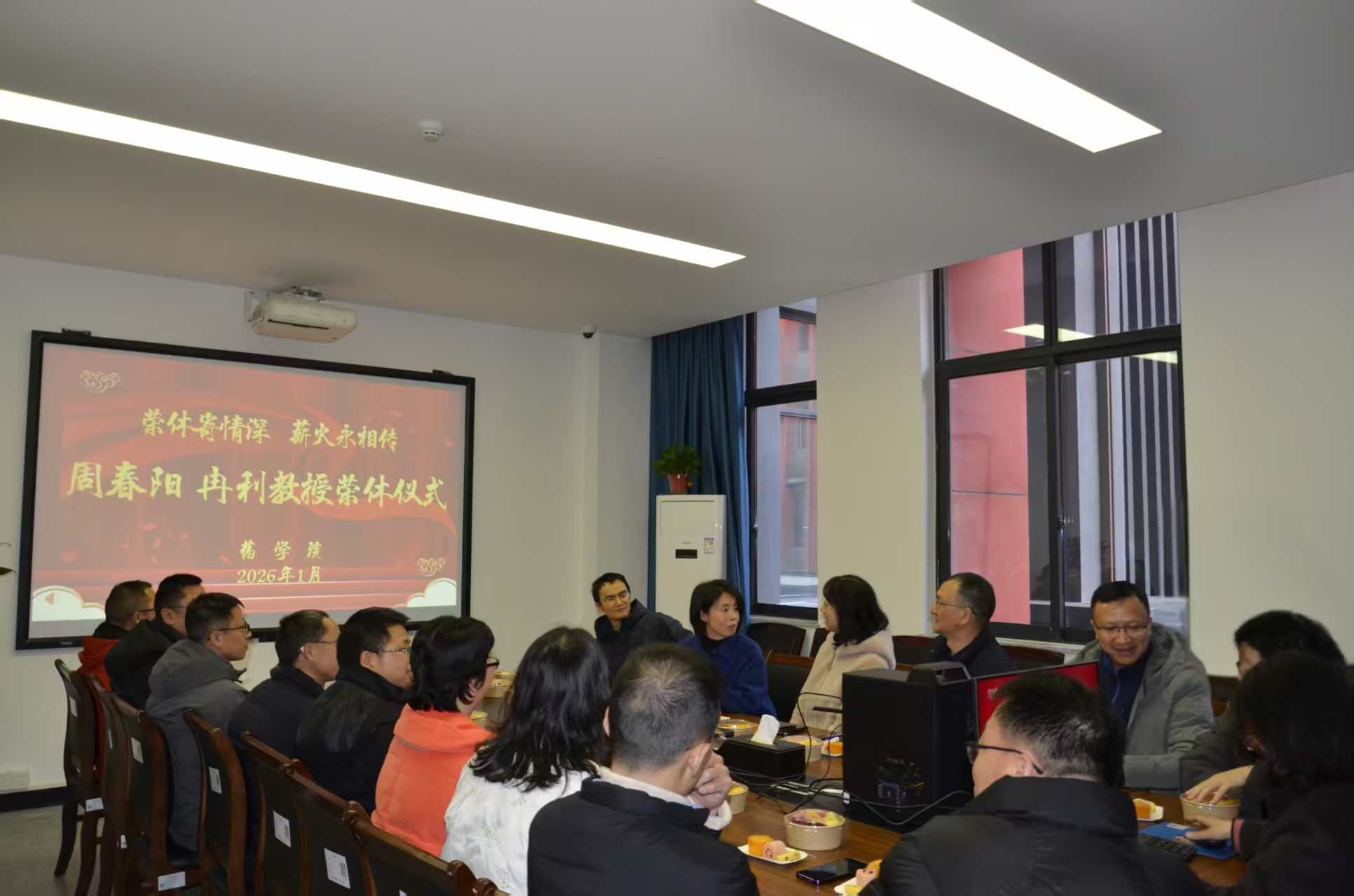 1月14日下午,药学院2025年光荣退休的周春阳、冉利教授的荣休仪式在学院会议室举行。药学院党政领导、行政科室负责人、教研室主任、教师代表参加了仪式。仪式由药学院党总支副书记冯莉苹主持。