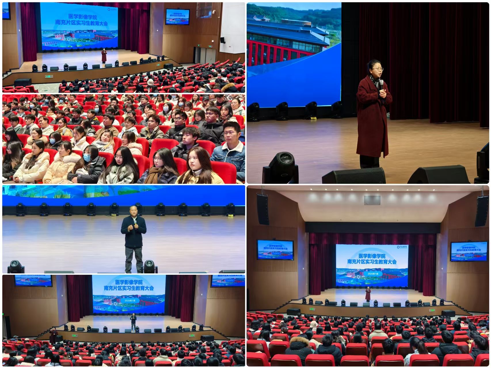 为加强实习生管理,提升学生职业素养与安全意识,1月20日,医学影像学院在临江校区世纪礼堂组织召开南充片区实习生教育大会。学院党委书记夏榕、学生科科长黄正宽、全体辅导员以及南充片区130名实习生参会。