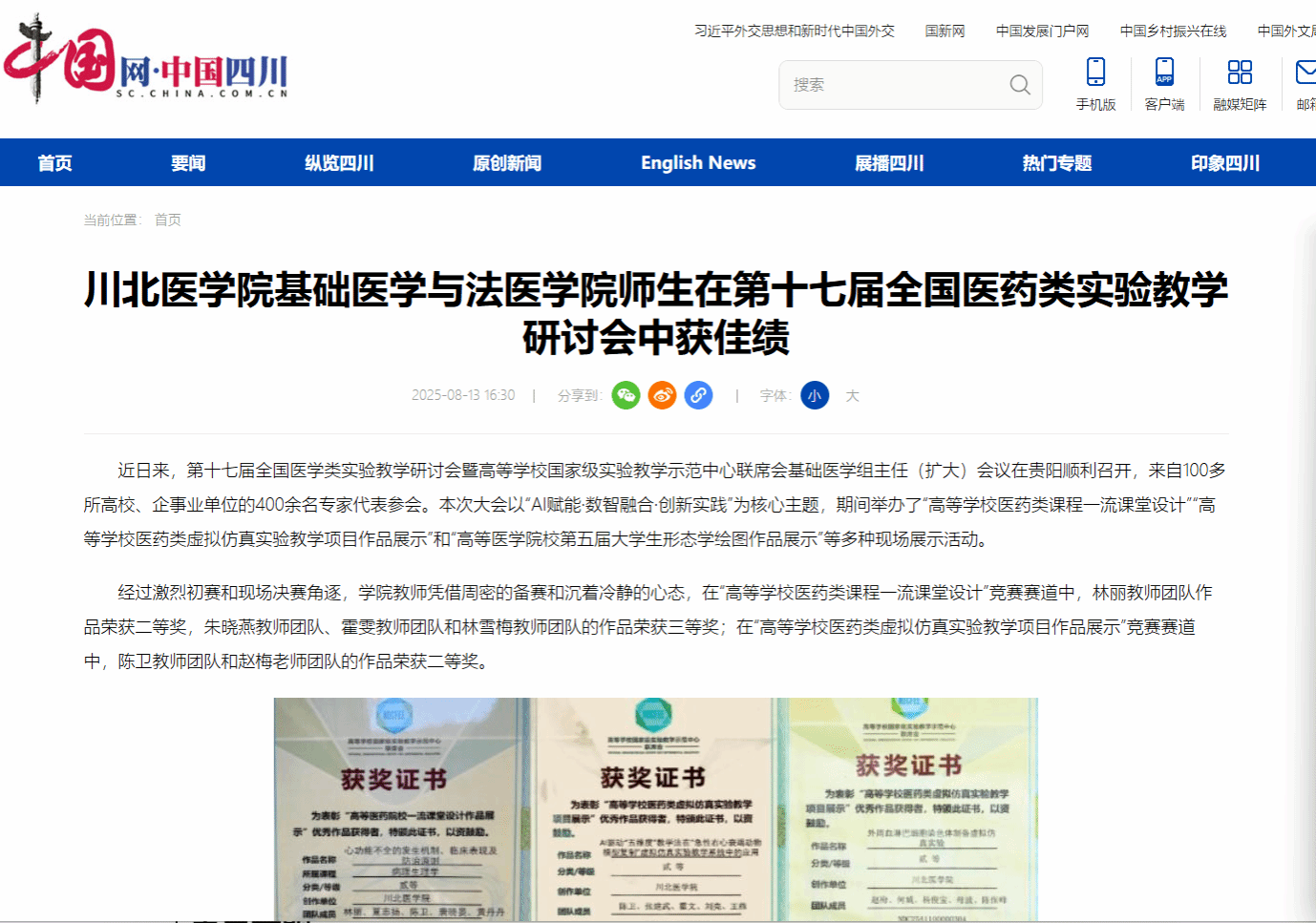 川北医学院基础医学与法医学院师生在第十七届全国医药类实验教学研讨会中获佳绩