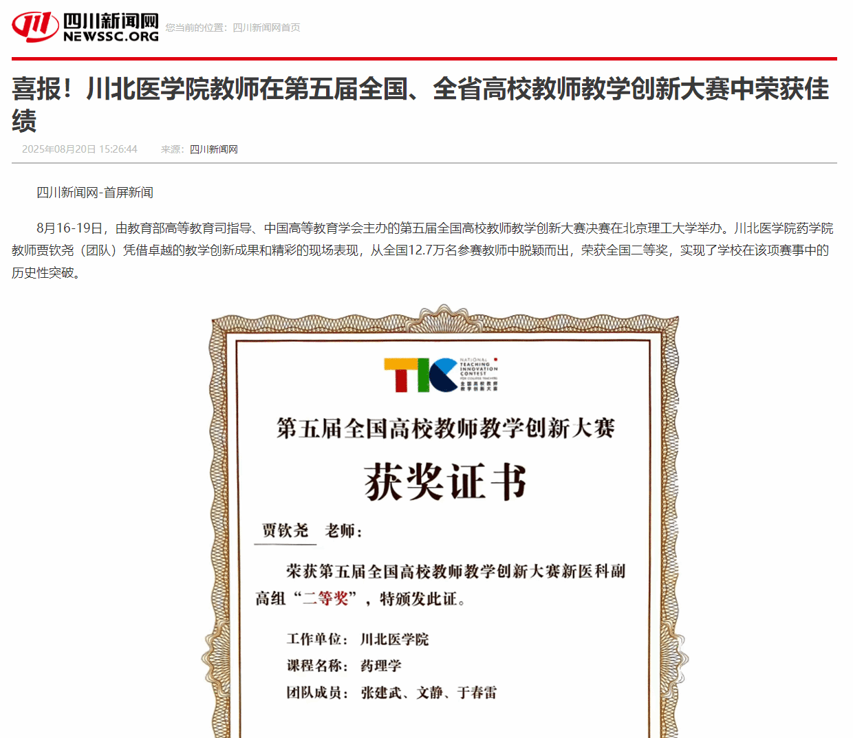 喜报!川北医学院教师在第五届全国、全省高校教师教学创新大赛中荣获佳绩