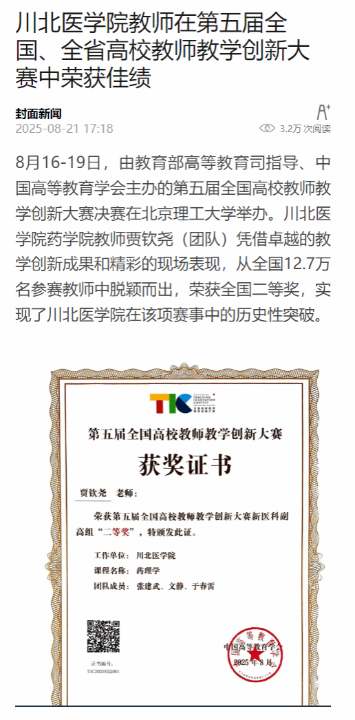 川北医学院教师在第五届全国、全省高校教师教学创新大赛中荣获佳绩