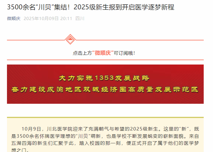 3500余名“川贝”集结!2025级新生报到开启医学逐梦新程