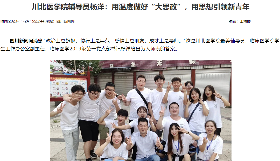川北医学院辅导员杨洋:用温度做好“大思政”,用思想引领新青年