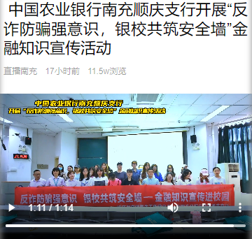 中国农业银行南充顺庆支行开展“反诈防骗强意识,银校共筑安全墙”金融知识宣传活动