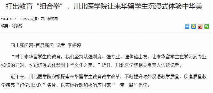 打出教育“组合拳”,川北医学院让来华留学生沉浸式体验中华美